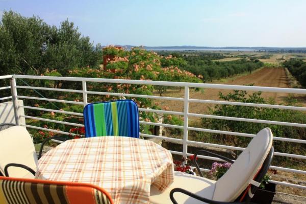 Vacation in an oasis of peace, located at the edge of the Vrana Lake Nature Park is guaranteeing you a pleasant holiday in the country setting outside the city and the tourist crowds. The house is situated on a hillside with a breathtaking view of Lake Vrana. You can spend pleasant moments of relaxation In the shade of the olive trees. Beautiful beaches of Biograd Riviera are just 10 km away. Vrana Lake is known for its recreational and sport fishing, while the whole area abounds in many hot historical sites. The house consists of a large living room, dining room (TV, air conditioning, truckle bed) and a fully equipped kitchen. The living room has a large terrace with a view of Lake Vrana, fields and olive groves. There are 3 bedrooms, of which 2 bedrooms with double bed, and one room has two single beds. On the east side of the house there is another large terrace overlooking the garden. The house has an outdoor fireplace with grill and barbecue. Parking on the plot (4-5 cars).
