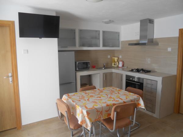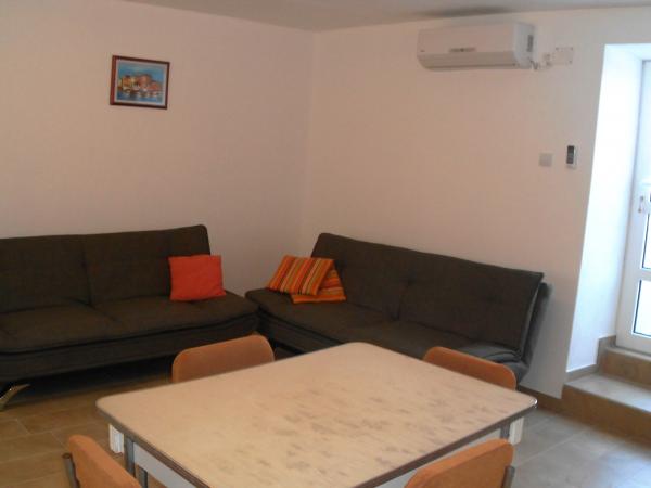 The newly renovated apartment is located in a quiet part of Vrbnik, which is from the center, shops and restaurants located just a hundred meters from the port to the beach 250 m. The beach is 10 minutes walk away, and within 2-6 km is slightly larger pebble and one sandy beach. The apartment is located on the ground floor with a separate entrance and a fenced yard at the front of the house and exit from the rear of the terrace overlooking the sea and the old town. It has a separate bedroom with a double bed and a large separate kitchen area with living room, where there are two extra beds. At the entrance is a separate entrance hall with a sofa that can serve as an extra bed, and two additional private rooms make room and bathroom with toilet and shower. Ultimately, this is a place that will give you a relaxing and enjoyable holiday.