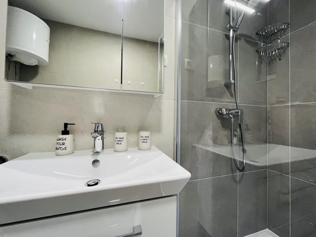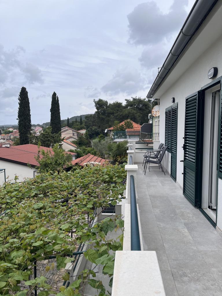 The apartments consist of two separate accommodation units with an area of 40 m2 and 33 m2 on the first floor of an independent house with a garden, located in the beautiful Dalmatian town of Vrboska on the island of Hvar, which is also called Little Venice. The house is about 200 meters from the center of the town, where there are shops, restaurants, post office, etc., as well as the sea. Both apartments are newly renovated, modern, air-conditioned and fully equipped, and guests have at their disposal satellite TV, free Wi-Fi and a safe. Both apartments have a balcony, the smaller one has a covered terrace of 10 m2, while the larger apartment has a covered terrace of 30 m2. Both apartments have the possibility of sharing a beautiful private swimming pool with associated equipment (loungers, shower...). A studio apartment for 2 people consists of a terrace, an entrance area, a bathroom with a toilet, a living room with a kitchen and a bedroom, while an apartment for 4 people consists of a kitchen with a dining room, a hall, a bathroom with a toilet, 2 bedrooms and terraces