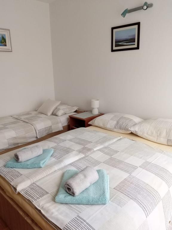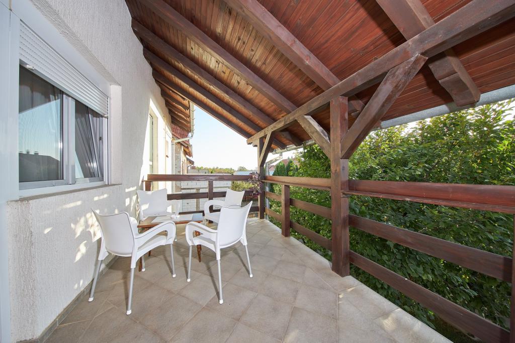 The apartment "Kod dide i baka" is located in a quiet part of Mitnica, on the first floor of a family house. It consists of three rooms, a kitchen and a bathroom. The triple room (double bed and single bed) has a balcony overlooking the lawn and the street. A double room has two separate beds. The room with three separate beds (two can be joined into a double bed) has a large terrace for morning coffee next to the cherry tree canopy. If you come with children, we also have a baby cot for our smallest guests. You can park your car in the garage in the yard. We offer our guests a barbecue in the gazebo with a large dining table. Behind the grill is a small garden where you can pick your own seasonal salad grown in the traditional way. We are at your disposal for all your inquiries. We are looking forward to your arrival and warmly welcome you! grandfather Ivica and grandmother Mirjana
