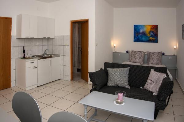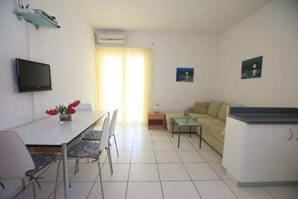 Great apartments .. very clean and equipped. 2 min from the beach in a quiet environment. All praise for the owners, very kind and pleasant, real hosts. We had a problem with the car, called their friends to help us, even gave us bikes for a walk, simply overjoyed.