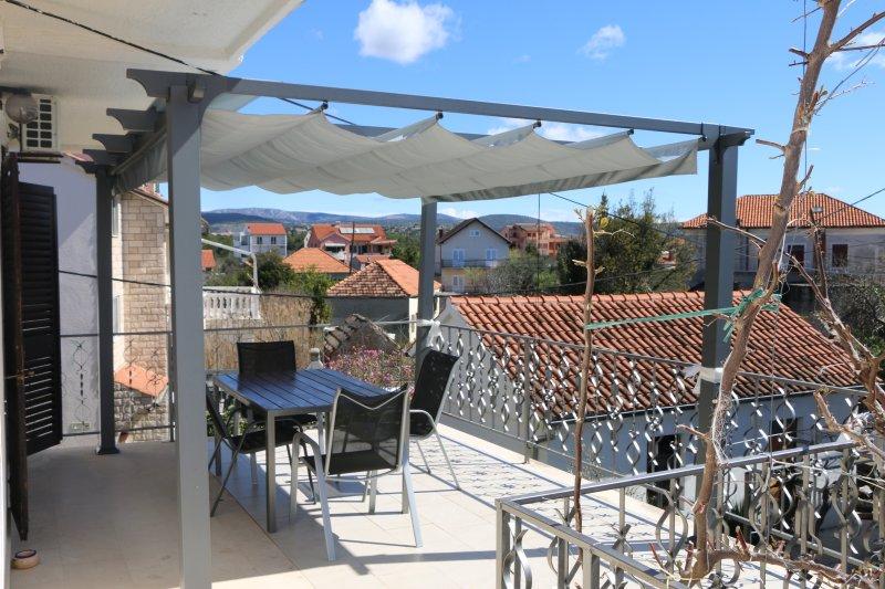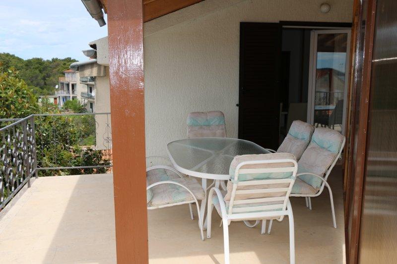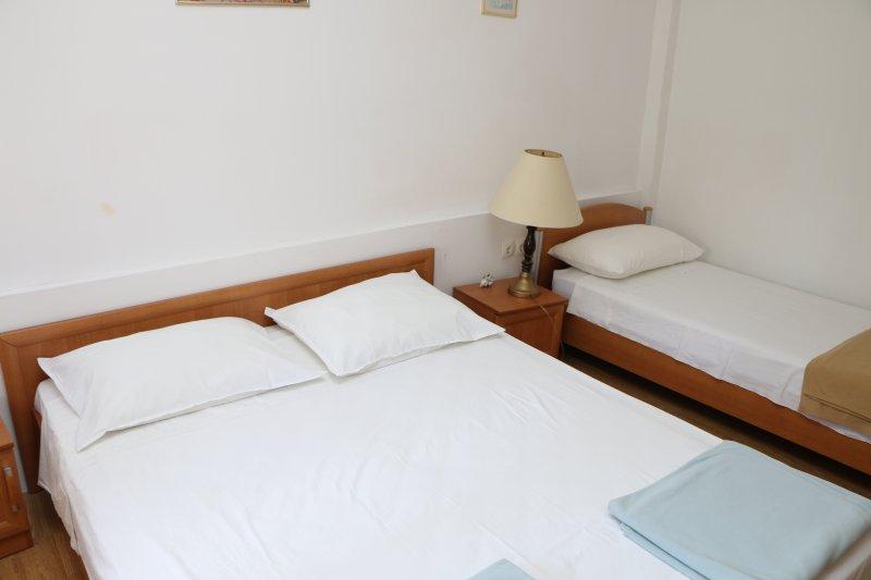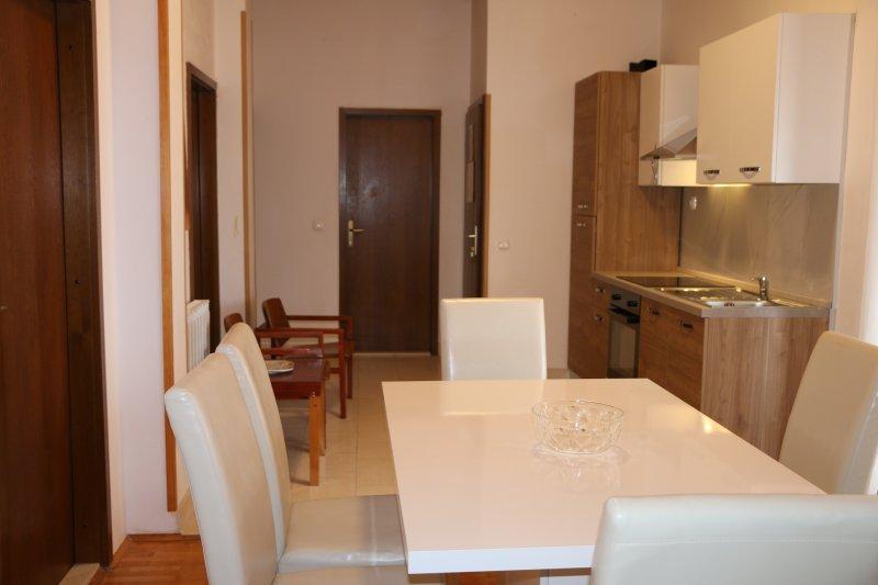 Fully equipped apartments in the center of Zablac, 50 meters from the sea and 200 meters from the beach, on the south side of the cement beach within the old pine forest and on the west side of the pebble - stone (natural) beach. A ten-minute walk separates the apartments from the SOLARIS Hotel Complex and within the same 2 kilometers of superbly decorated beaches with a variety of facilities for sports and recreation as well as top gastronomic and entertainment offer during the day and night. From these few words to conclude that each age group can meet their needs and enjoy holidays in our apartments. All apartments are fully equipped with all necessary inventory for a comfortable stay. Parking space in front of the house.