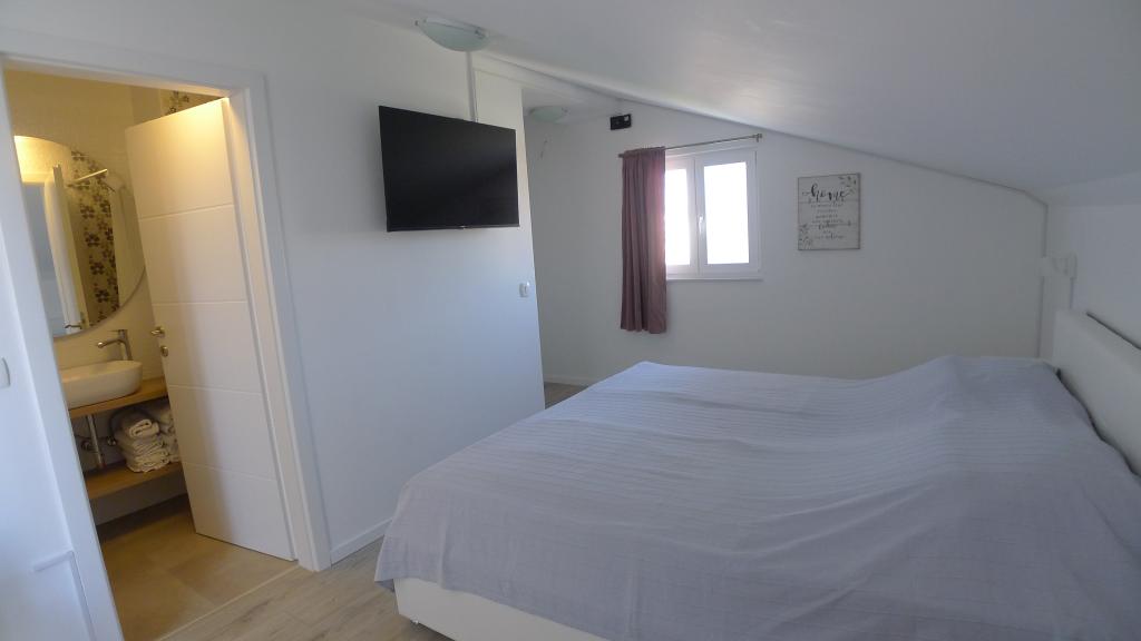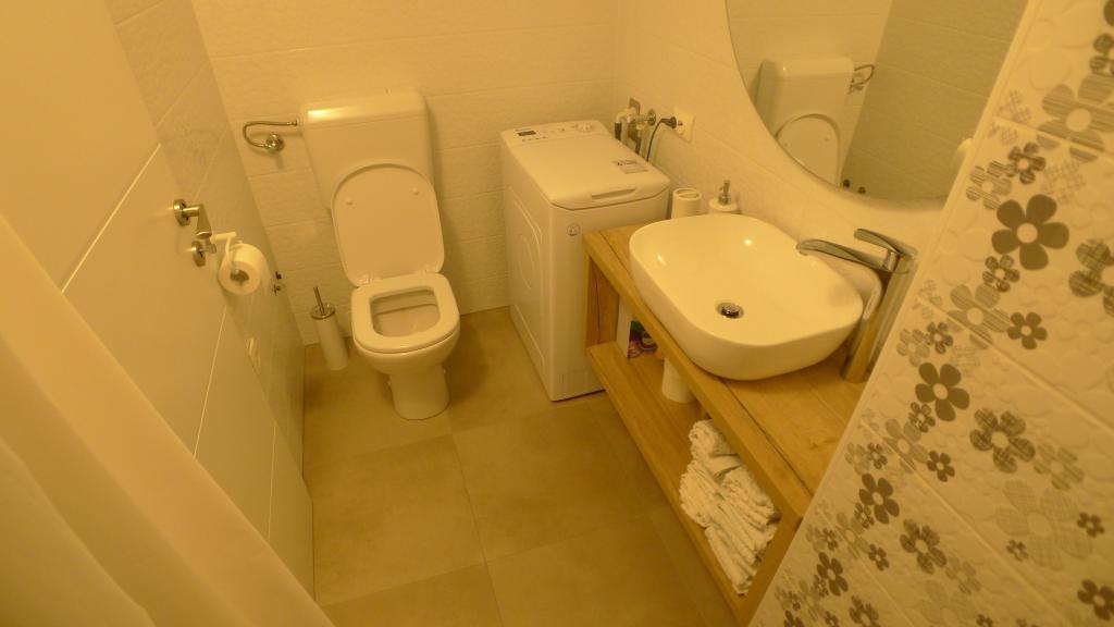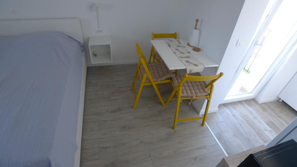 The apartment was very nice, new, clean. Very comfortable beds, well equipped kitchen. It is close to the beach, where there were never many people. The owner responds and communicates very quickly.