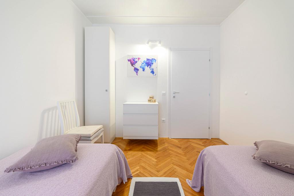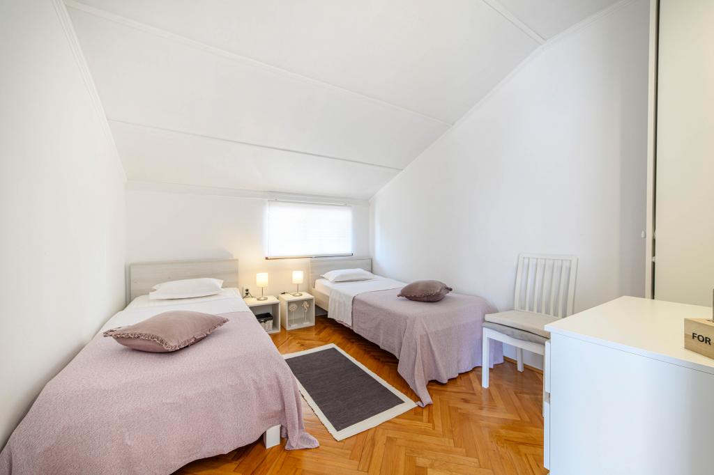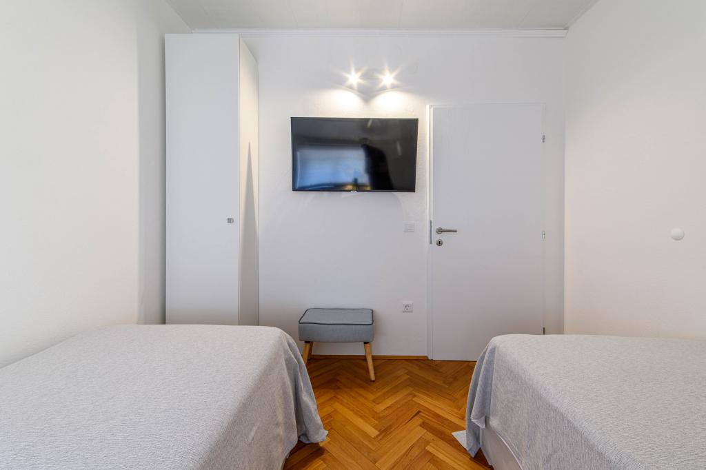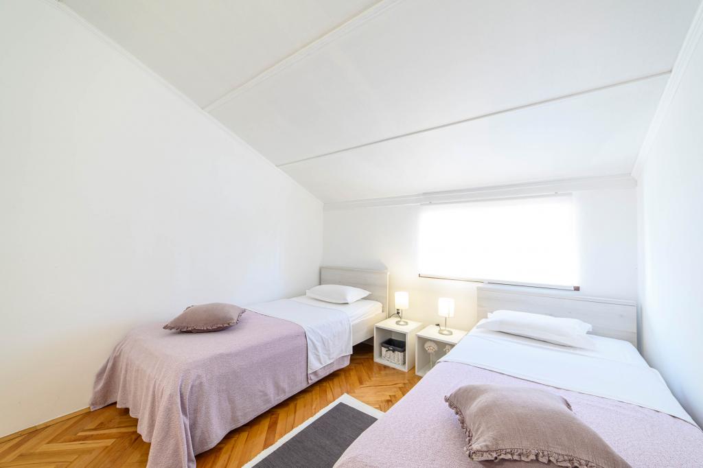 The apartments are located 50 m from the sea on the first floor of a family house, in a quiet tourist place 10 km from Sibenik, called Zaboric. The apartments have two bedrooms, one with two single beds and the other with a double bed. The apartment has a kitchen, table with chairs, bathroom (toilet / shower) and terrace. Accommodation is air conditioned, has satellite TV and free internet. Laundry is located inside the house, outside the apartment and its use is free of charge. Parking is located inside a fenced yard. The nearest grocery store is 150 m away. The apartment is located in a quiet neighborhood with two nearby restaurants. Places to visit nearby: - Dalmatia Aquapark (Solaris) - 10 min by car - Fortress of St. Nikola - 15 min by car - Krka National Park - 20 min by car - Island Krapanj - 5 min by car - UNESCO heritage St. Jacob's Cathedral - 10 min by car