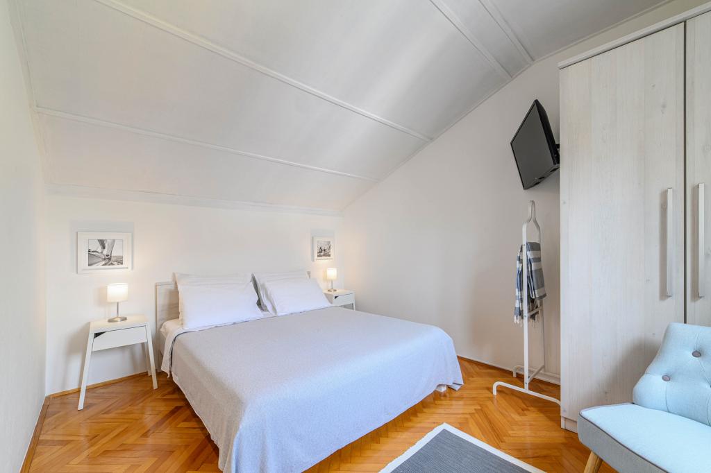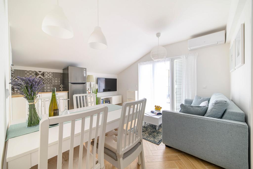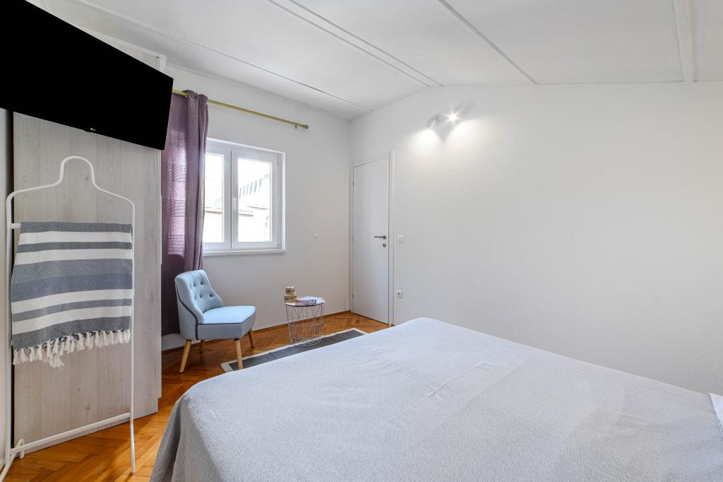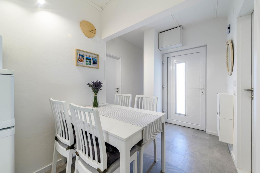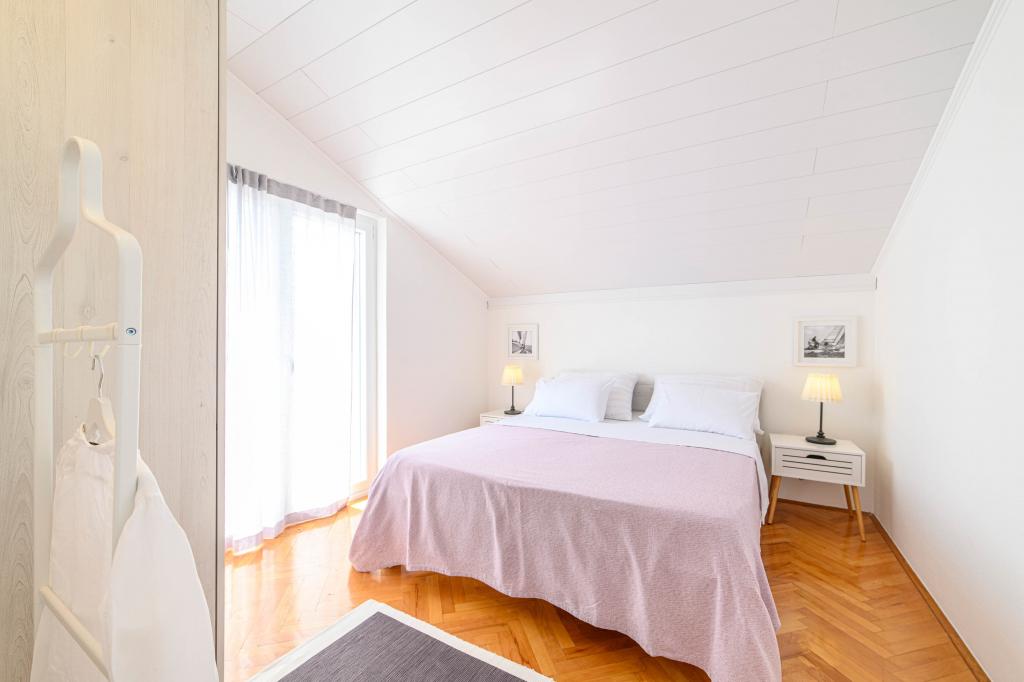 The apartments are located 50 m from the sea on the first floor of a family house, in a quiet tourist place 10 km from Sibenik, called Zaboric. The apartments have two bedrooms, one with two single beds and the other with a double bed. The apartment has a kitchen, table with chairs, bathroom (toilet / shower) and terrace. Accommodation is air conditioned, has satellite TV and free internet. Laundry is located inside the house, outside the apartment and its use is free of charge. Parking is located inside a fenced yard. The nearest grocery store is 150 m away. The apartment is located in a quiet neighborhood with two nearby restaurants. Places to visit nearby: - Dalmatia Aquapark (Solaris) - 10 min by car - Fortress of St. Nikola - 15 min by car - Krka National Park - 20 min by car - Island Krapanj - 5 min by car - UNESCO heritage St. Jacob's Cathedral - 10 min by car