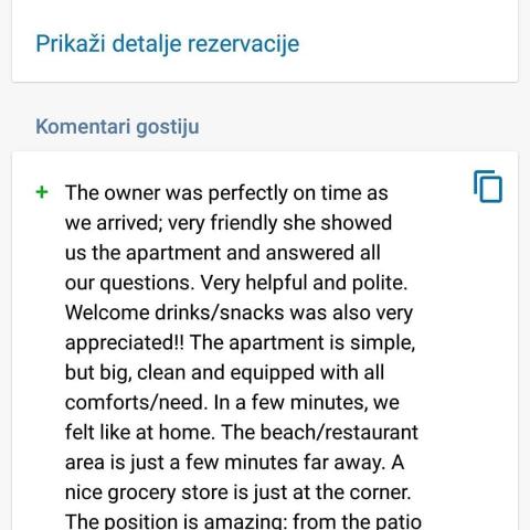 Apartment you can only recommend. Accommodation is in a quiet environment, are friendly home. The sea was clean and warm. Well, we relieved the whole family. Dakujeme