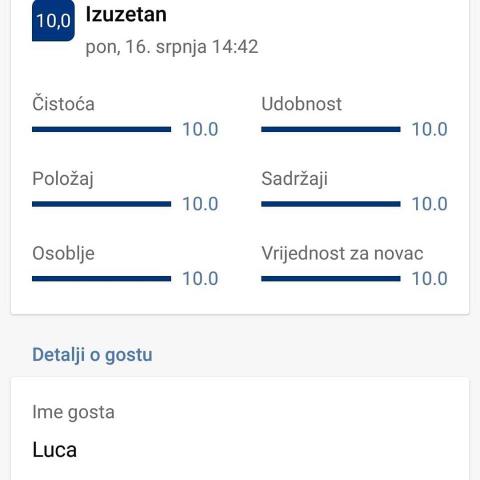 Super place for a good rest. Peace and quiet. Very kind and attentive hosts. Martin very protective. Apartment equipped with the bare essentials. Good place for trips to the Krka waterfalls and to the larger cities of Sibenik, Trogir, Split. The beach and sea clean and pleasant. I would recommend!