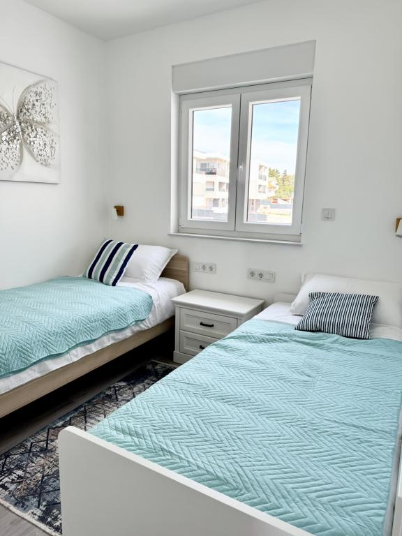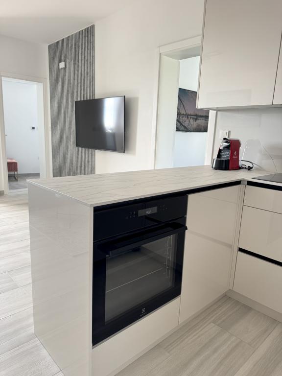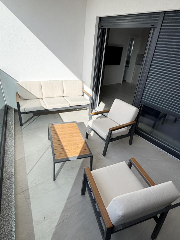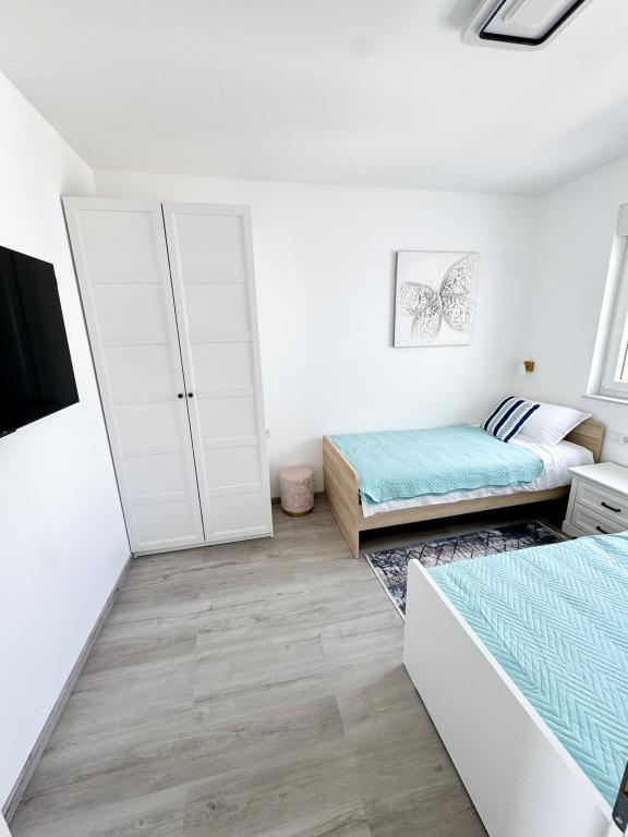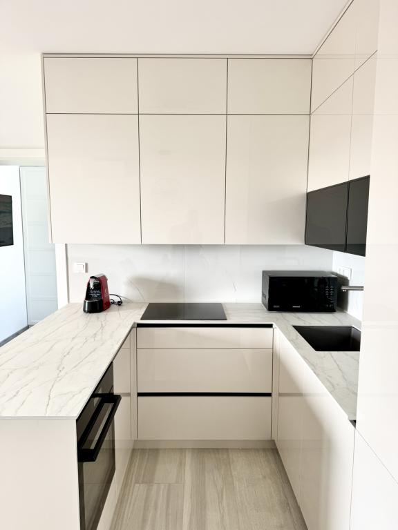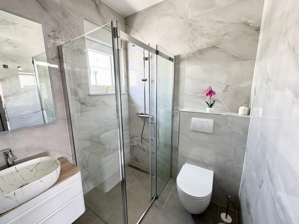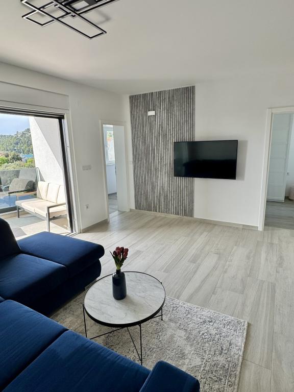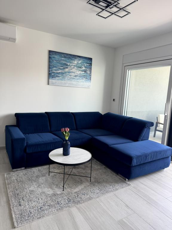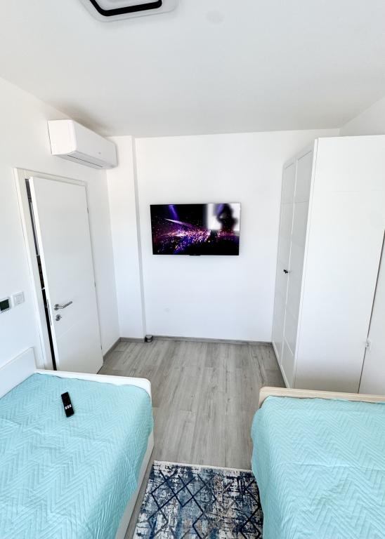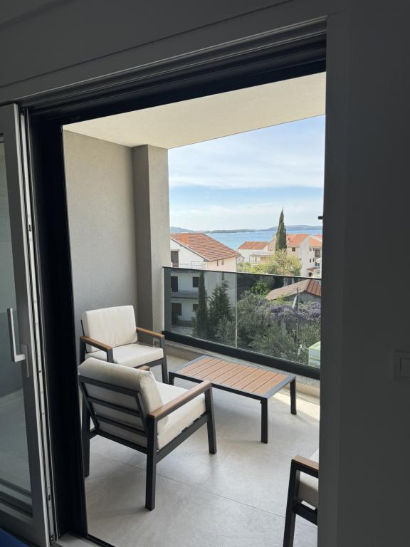 New modern apartment, 73m2, two bedrooms, two bathrooms, all rooms with air conditioning and TV. The only apartment on the second floor with a sea view.