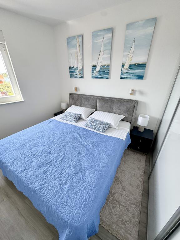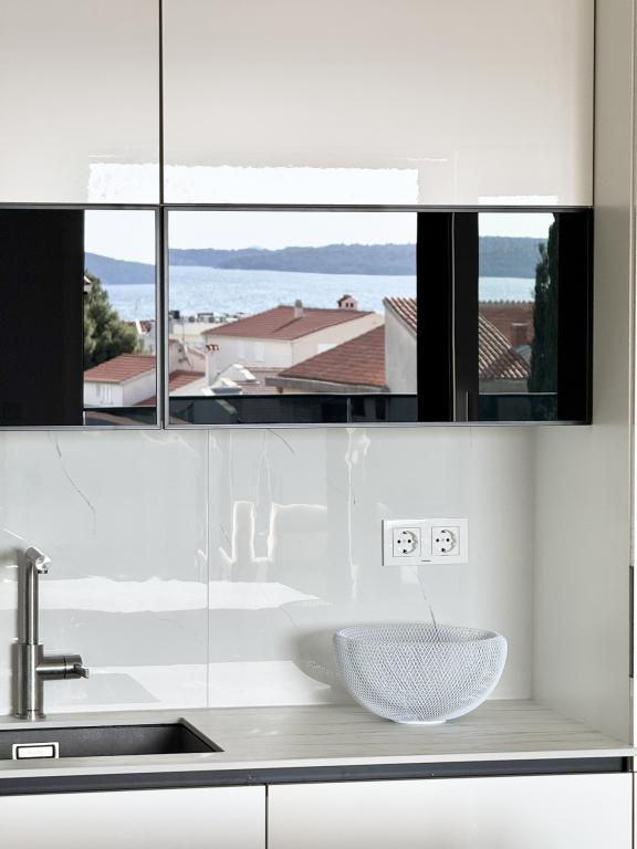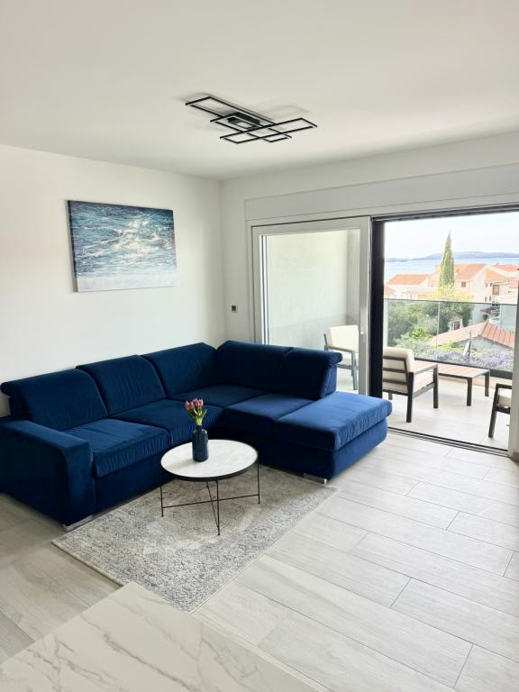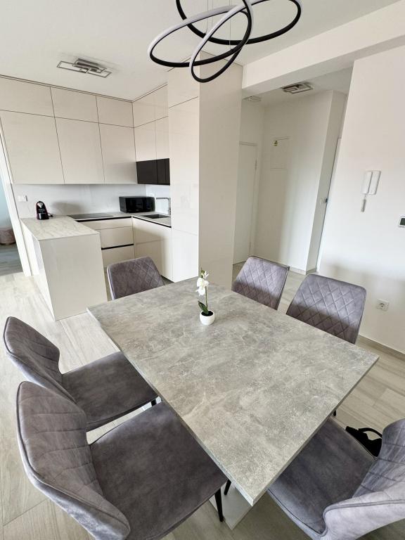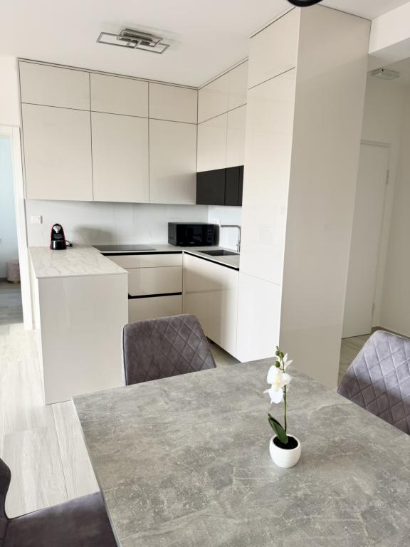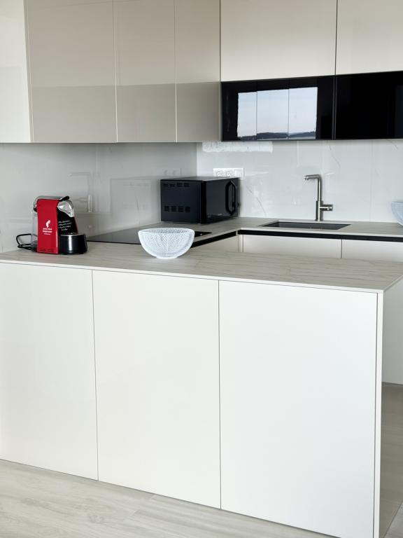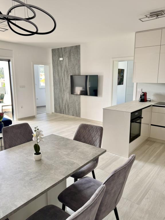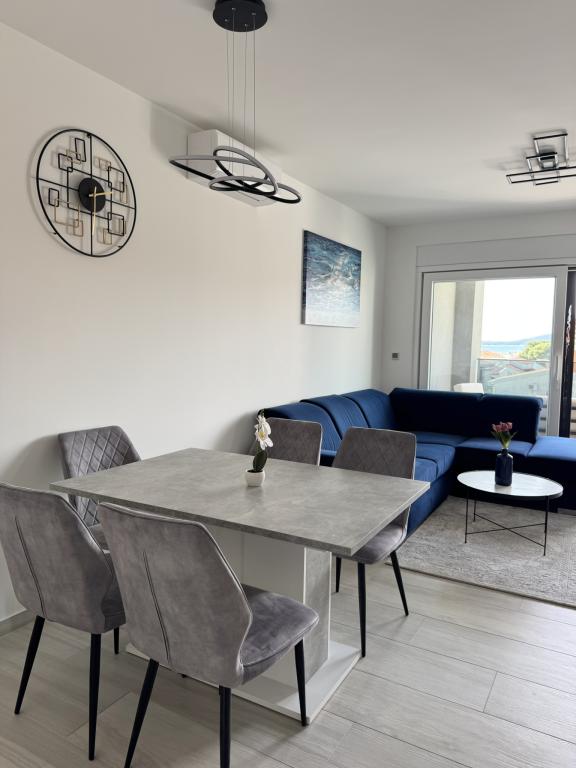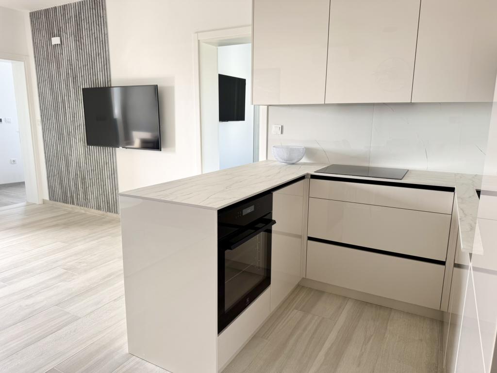 New modern apartment, 73m2, two bedrooms, two bathrooms, all rooms with air conditioning and TV. The only apartment on the second floor with a sea view.