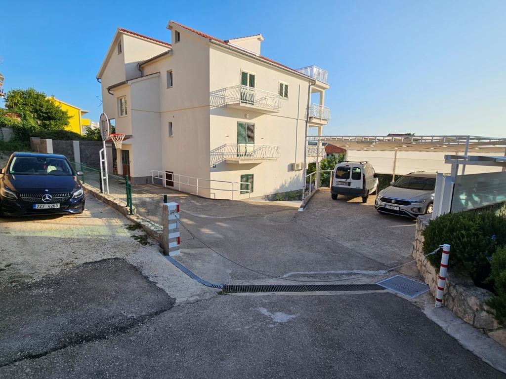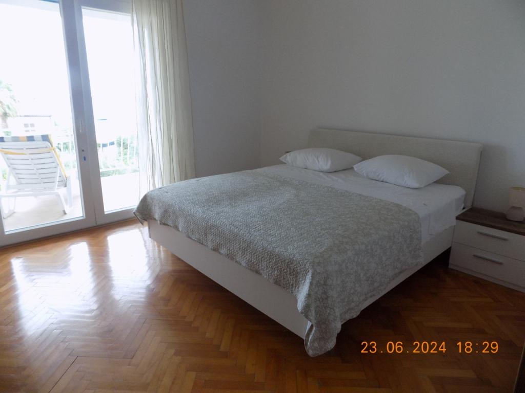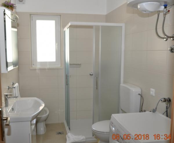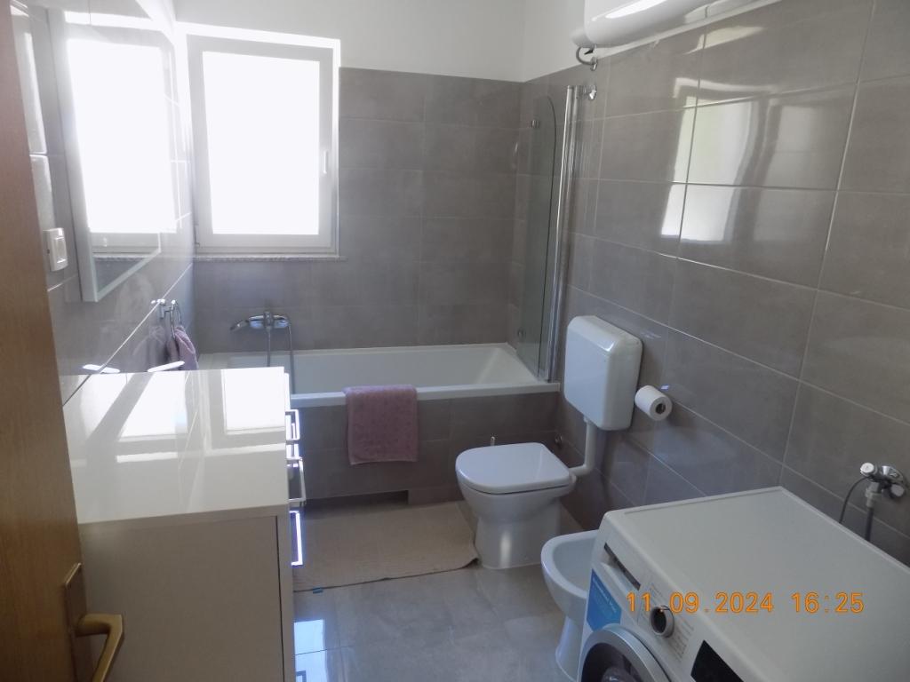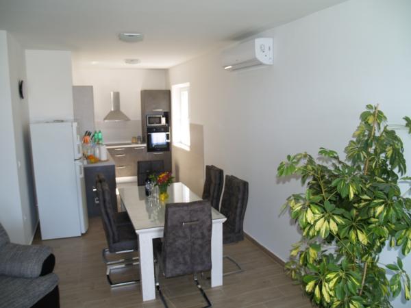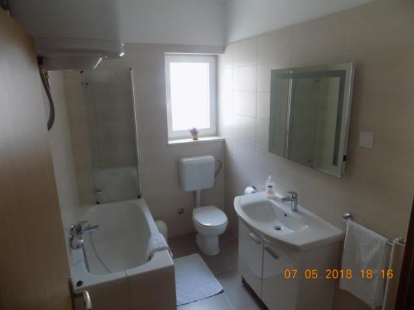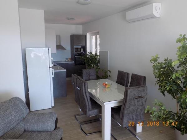 Very clean and well maintained apartment. The kindness and hospitality of the host was on high level. The pictures and description of the place corresponds to ad. The bathroom is not modern, but It's good. Very large terrace. Each room has a balcony. Two bedrooms also have access to the terrace. The kitchen is fully equipped. The sea is about 30 meters. Shopping available in town. For large purchases in supermarkets (Konzum / LIDL) can be easily reached by car. We would like to come back here at any time.