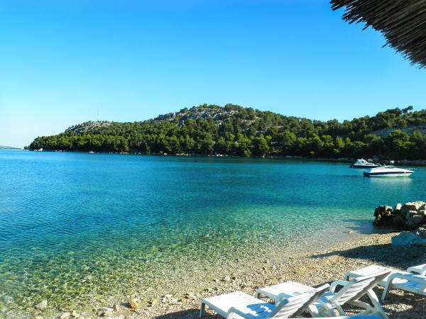 Spacious and modern apartments located just 30 meters from the beach with sea views, free Wi-Fi and parking. Each apartment has its own kitchen and bathroom. The facility is located just 5 minutes walk to the town center, restaurants and cafes. The nearest grocery store is 15 minutes away. Visitors can choose from a stone, gravel, sand and concrete beach. There is a free ramp for launching and removing boats from the sea. There are also volleyball and water polo courts, and a children's playground with a sandbox. Regular bus lines connect Žaborić with local places. Sibenik center is only 12 km, Krka National Park 25 km, and to the National Park Kornati organized tourist sailing during the summer season.