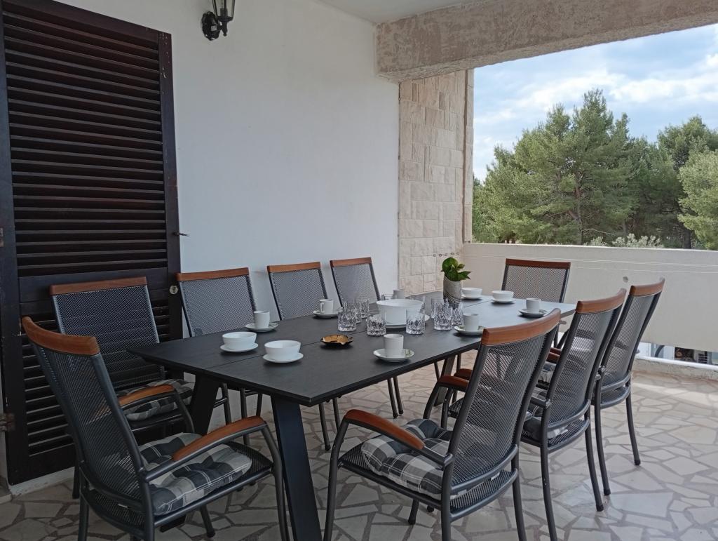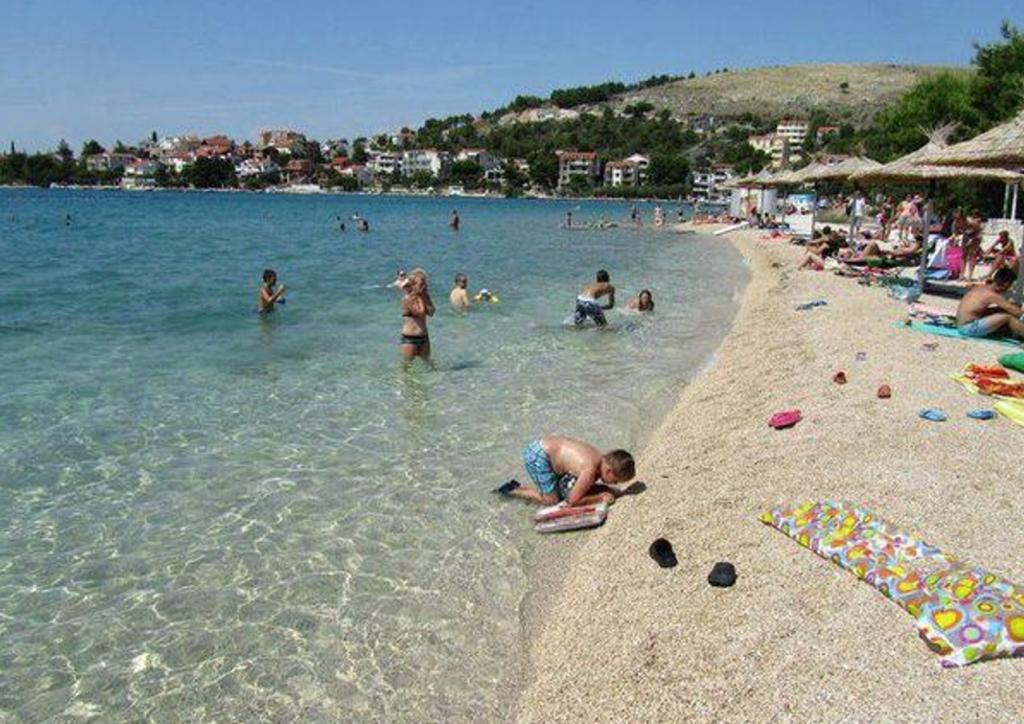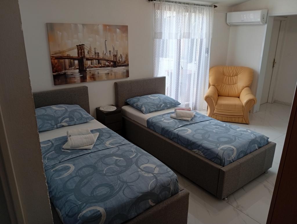 Braco apartments by the sea with a sea view are located in Žaborić, 150 metres from Jasenovo Beach. They offer accommodation with private terraces overlooking the sea. The apartments can accommodate 10 adults, 9 adults and 4 adults. The apartments are equipped with air conditioning, free Wi-Fi, a living room, a dining area with a flat-screen satellite TV, private bathrooms and kitchens. The location is quiet. A bakery with always fresh products is located 50 metres from the property. Jasenovo Beach in Žaborić is the beach that makes Žaborić famous on this part of the coast as a place with a beautiful sandy beach. You will find Jasenovo at the southern end of the settlement next to the camp of the same name. The beach offers a 300-metre-long sandy strip, sun loungers and parasols for protection from the relentless sun's rays. The sea here is clear and clean, and those who want action can also enjoy table tennis, a trampoline or pedal boating. There is also a restaurant and a beach bar nearby. A perfect place to relax.
