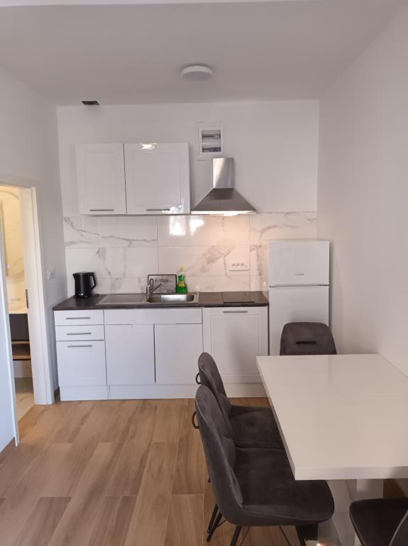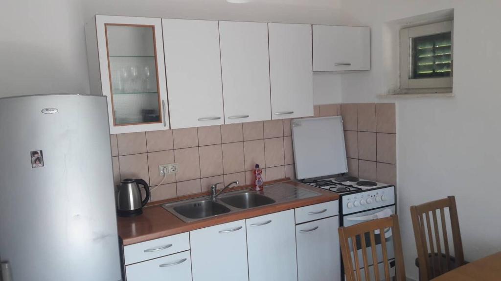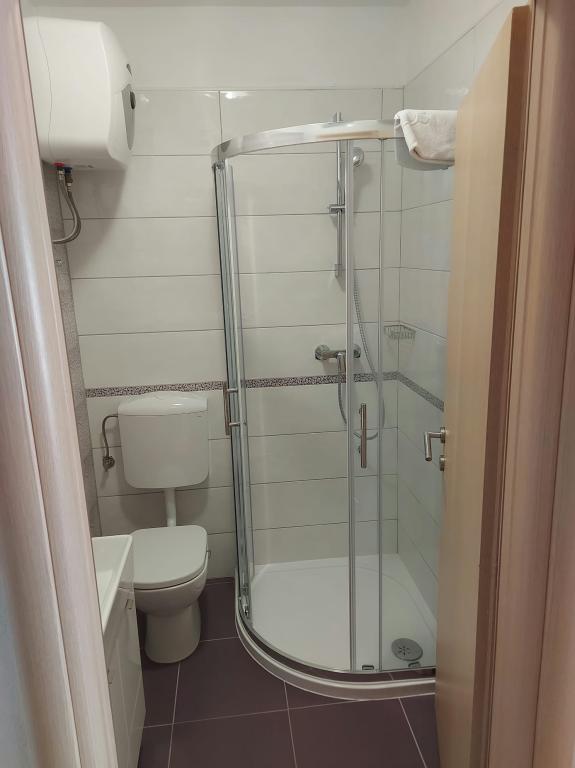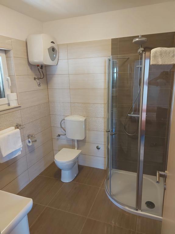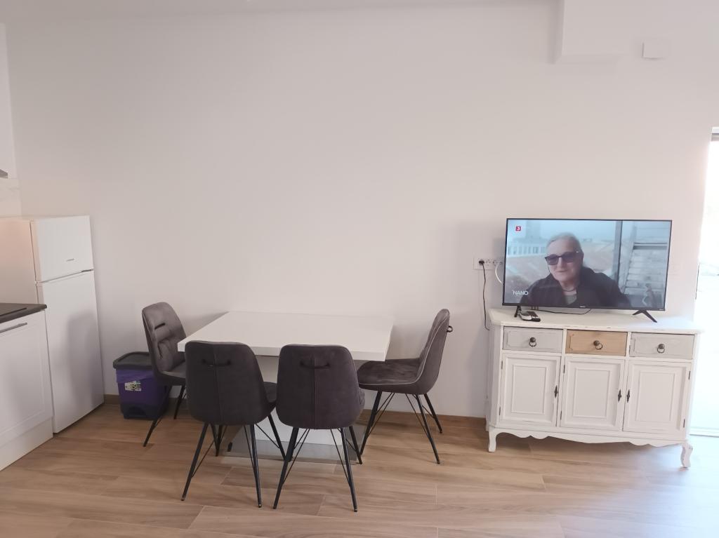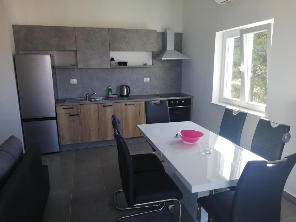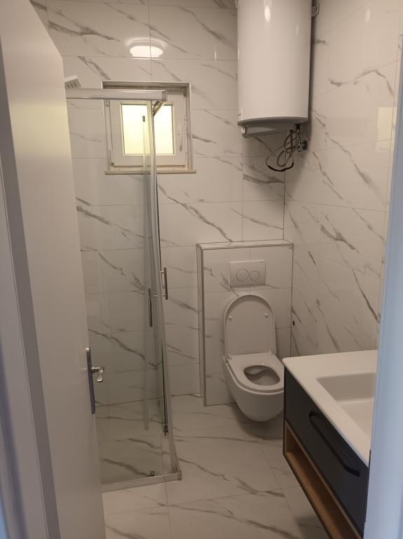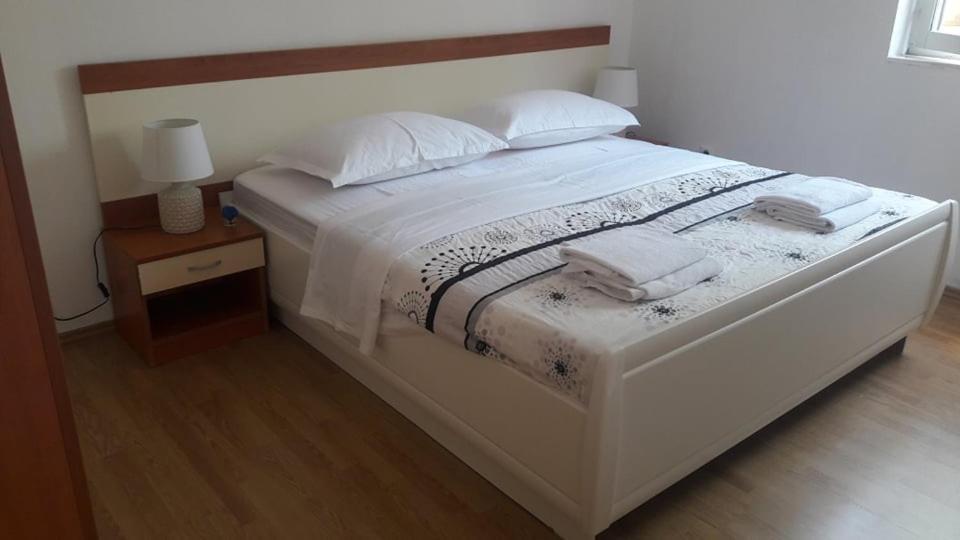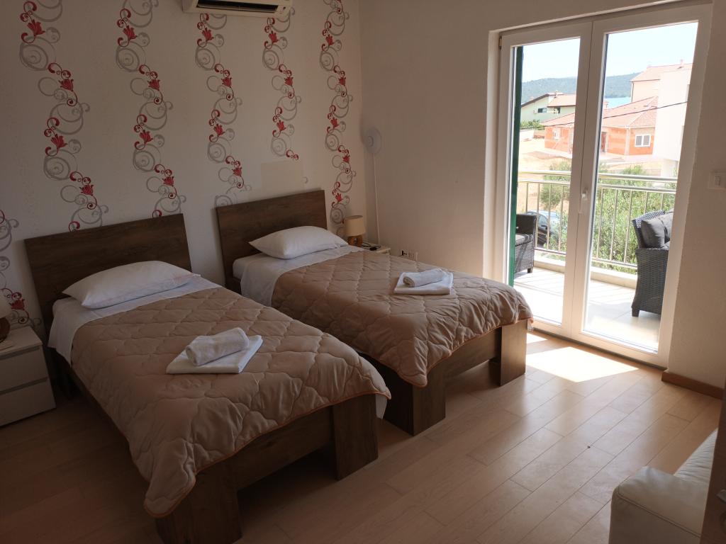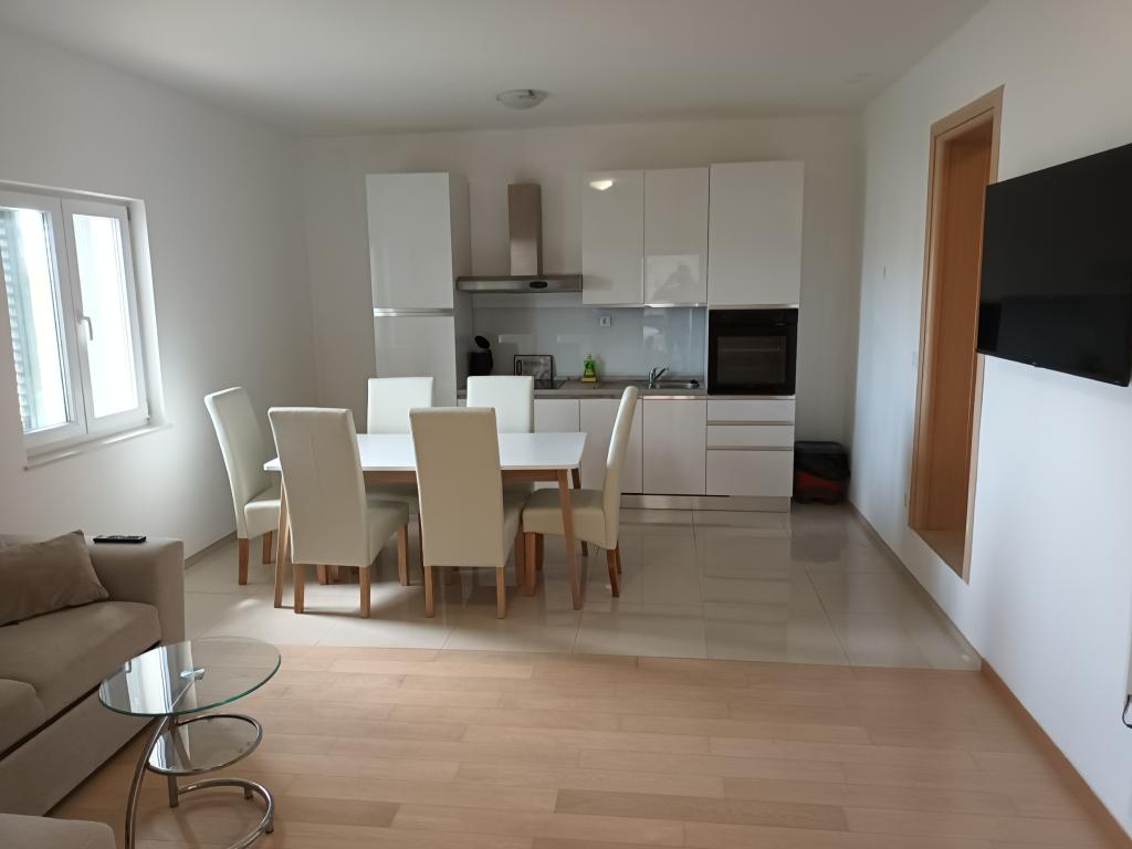 Read more Accommodation unitsApartment A 5+2 ID 79415 is located on the first floor and has: two bedrooms, one with a large double bed, the other with 3 beds for one person, a kitchen with a living room in which there is a sofa bed for two people, 2x bathrooms and a balcony with the table. Apartment A 3+2 ID 79447 is located on the first floor and has: one bedroom with a large double bed + bed for one person, a kitchen with a living room in which there is a sofa bed for two people, 2x bathrooms and a balcony with a table. Studio Apartment A 2+1 ID 79448 is located on the ground floor and has: double bed + single bed, kitchen, bathroom and terrace with table. Studio Apartment A 2+0 ID 79449 is located on the ground floor and has: a double bed, a kitchen, a bathroom and a terrace with a table. Advance payment of the reservation is 20% in advance to the renter's bank account, the rest upon arrival. The advance payment is non-refundable. Check in is from 3 pm, check out until 10 am.