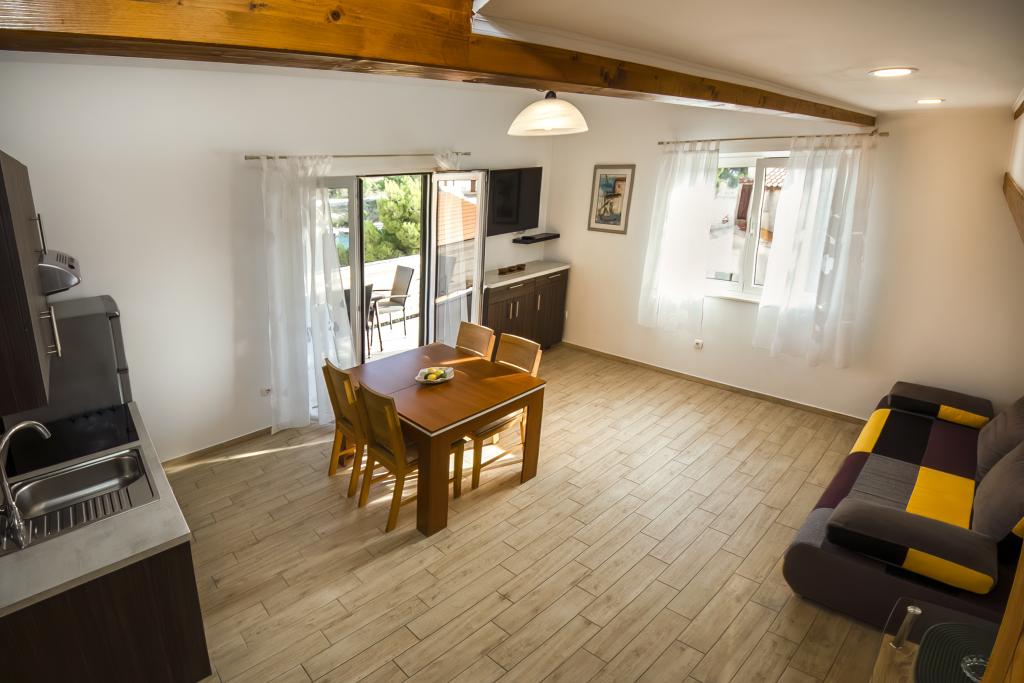 Males Villa is placed in Zaboric, little place in middle Dalmatia only 10 km south of ancient Croatian town of Sibenik, on the main road to Split. The house has two apartments on the first and one on the second floor, 50 meters from the sea. Apartments are new, modern and nicely decorated, and the proximity to the sea gives them special meaning. With the peace, quiet, affordable, we want your stay with us unforgettable. The satisfaction of our guests and our reunion in Žaboriću us the greatest recognition. The house was built in 2003, and it consists of three apartments. All apartments are fully equipped and ready for your arrival. In each apartment there is fully equipped kitchen with all appliances and utensils for cooking and eating, refrigerator, stove, water, digital TV with satellite channels, air conditioning, free internet, terrace, equipped bathrooms and bedrooms. All guests have at their disposal: parking, boat mooring (up to 8m).