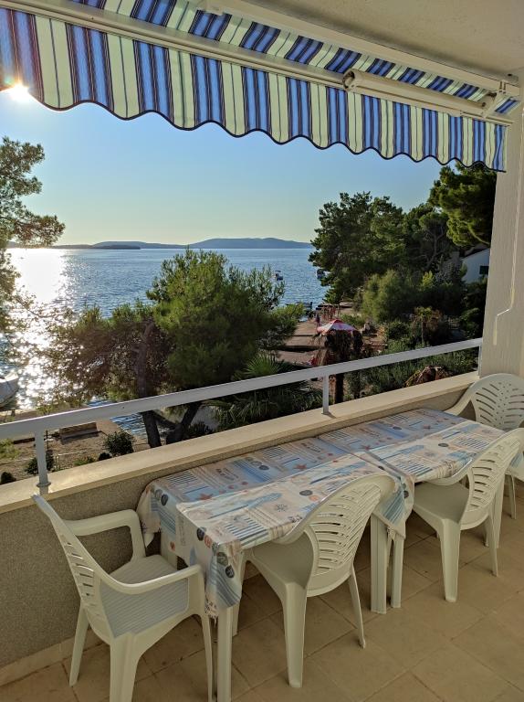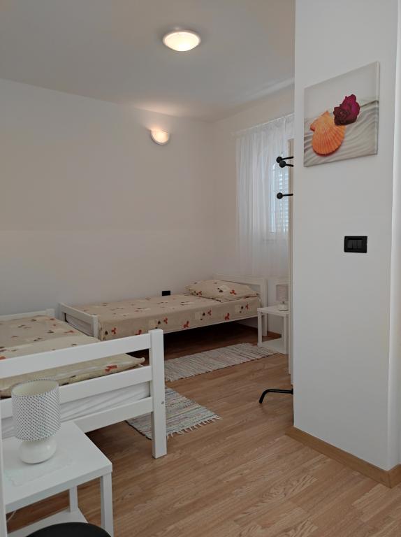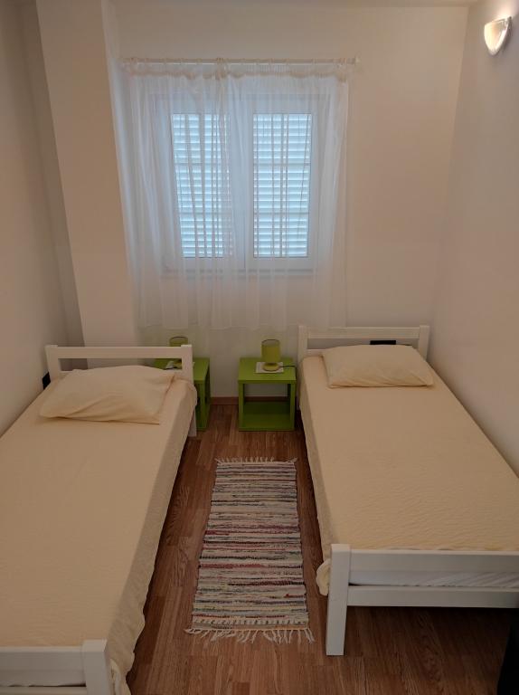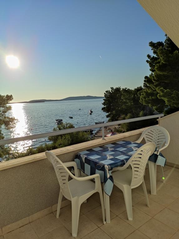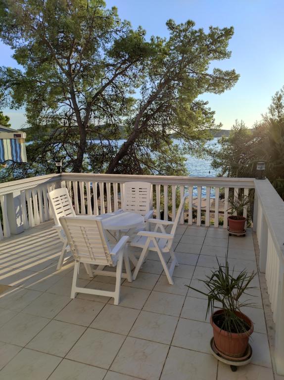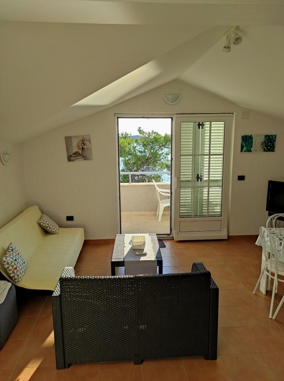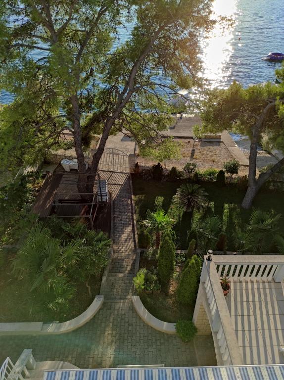 Villa Dradar is located first row to the sea. Ap A10 (A6+A4) We can offer you our highly praised A10 apartment, which consists of two floors, which have a total of 200m2 of space. The space consists of; The first floor has a kitchen, dining room / living room with sofa bed, bathroom, three bedrooms with 6 beds, wardrobe and a balcony with a sea view in front of the house. The connection between the two floors is an internal staircase. The second floor has a kitchen, dining room / living room with sofa bed, bathroom, wardrobe and two bedrooms with 4 beds, a terrace with a sea view. You also have a garage, parking for two more cars, barbecue, garden, garden furniture with awning, outdoor shower, deck chairs and umbrellas, a beach in front of the house for adults and children. We have a place for a boat mooring. Everything is newly furnished and category 4 **** The price of the stay is € 40 per person / night. Upon arrival, an advance payment of one day's amount is paid, in case of damage insurance. The amount is refunded upon check-out.