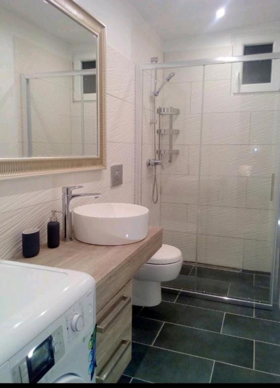 Completely and modernly equipped apartments in a quiet place Zaboric near Sibenik, located first row to the sea. The beach is right in front of the building at a distance of 5 meters from the apartment. All apartments have a sea view. All apartments are equipped with all household appliances from dishwasher, washing machine, microwave, hob, oven, kettle, refrigerator with freezer,, TV SAT, WI-FI internet, hair dryer, toaster. Some apartments have an ice machine. All apartments have free parking, and free use of barbecue in the yard as well as free beach chairs. Pets are allowed. Possibility to use boat moorings up to 7 meters, and parking for the trailer. Baby cot on request. Guests can relax on a hammock in the shade of the garden. It is possible to rent a boat and jet ski next to the house. There is a water trampoline for children nearby, as well as a land trampoline.