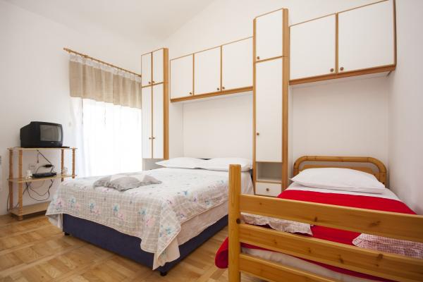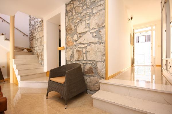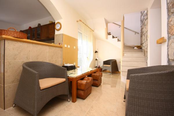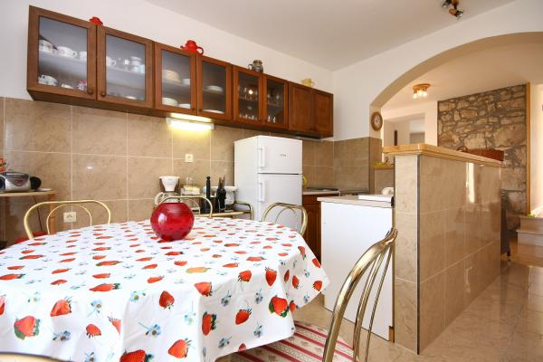 The holiday house is located in the place Jadrtovac, 7 km away from Sibenik and only 20 m from the sea. It consists of 3 bedrooms, living room, kitchen, 2 balconies, terrace, 3 bathrooms. The house has its own private berth for a non-charging boat. Distance from the beach 50 m. Close to the bicycle path and possibility of renting bicycles. Krka and Kornati National Park are 20 km away.