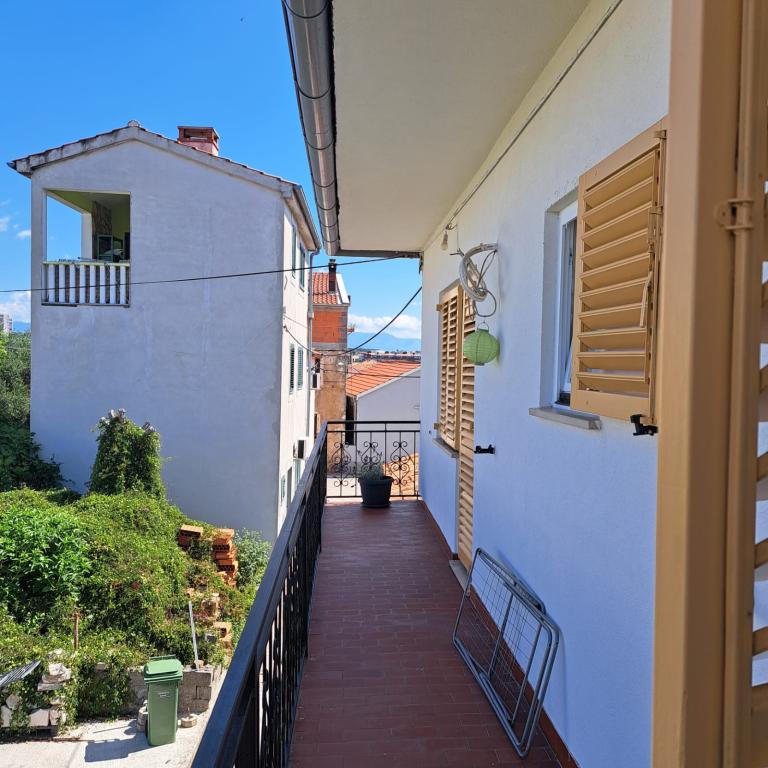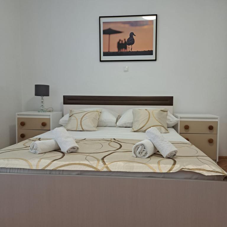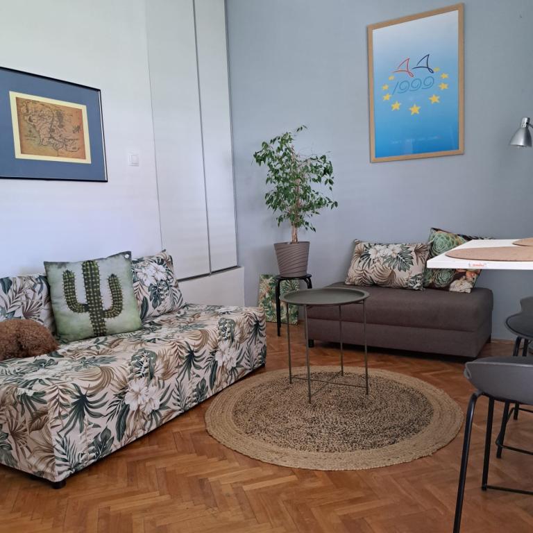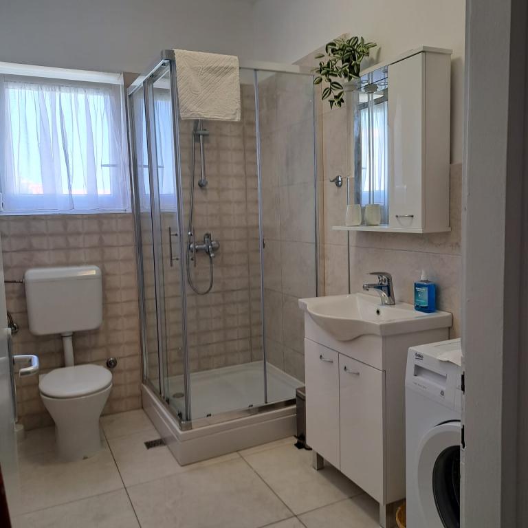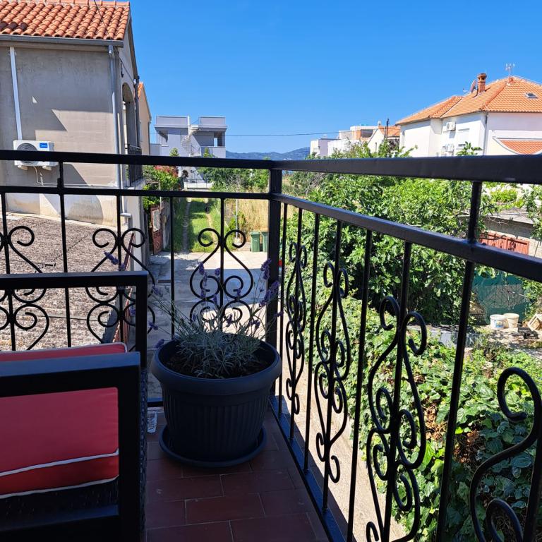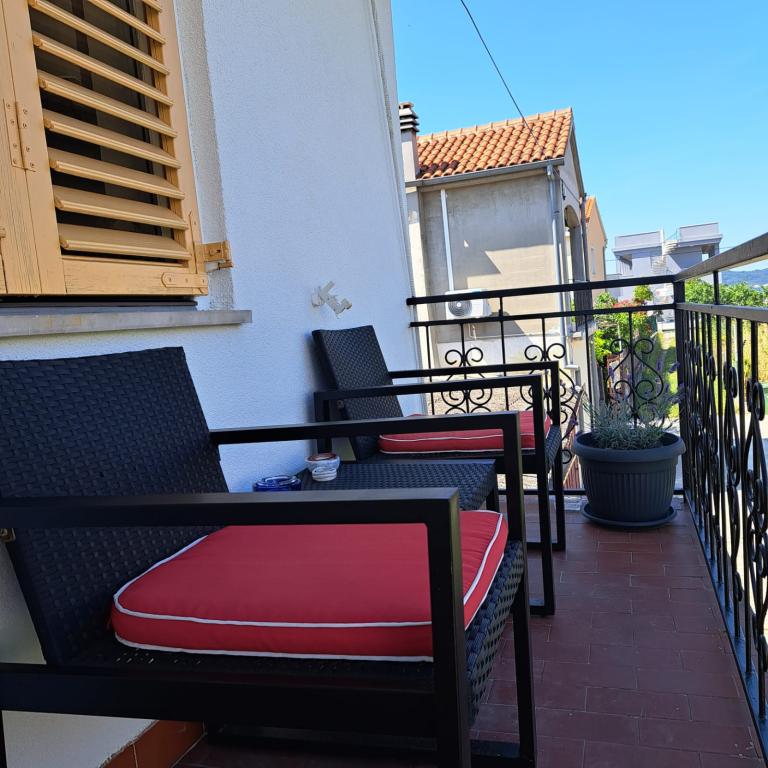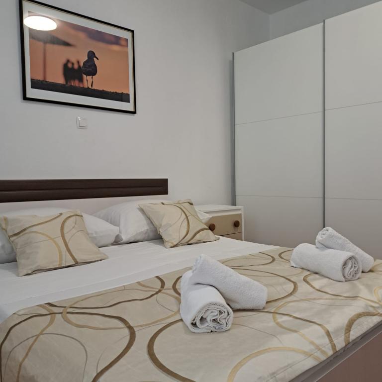 Fully equipped apartment in a quiet part of Zadar with a sea view. The building is located 300 meters from the sea and 400 meters from the nearest beach. The center is about 1 kilometer away, and the path to the center can be crossed by a wonderful walk (Karma and Kolovare) along the sea. The apartment is intended for two people, and consists of one bedroom with an exit to the balcony, a spacious living room with a kitchen and a bathroom (shower, washing machine...). There is a view of the sea from the balcony.