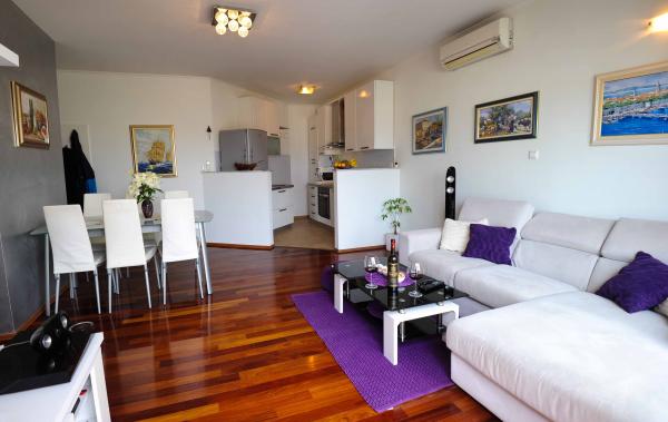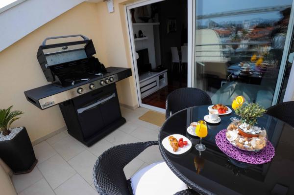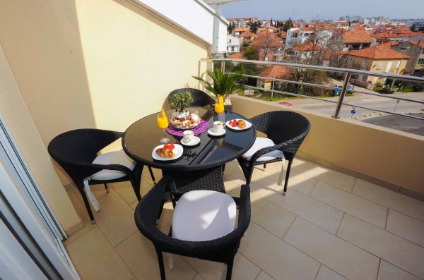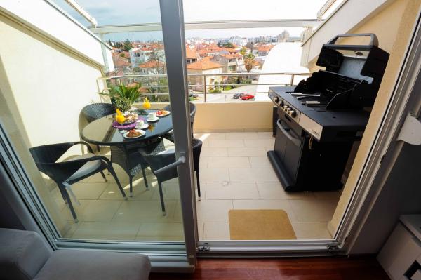 Apartment City Gallery is located in Zadar, only 5-10 minutes walk from the city center, the Kolovare beach and the bus station. In the immediate vicinity of 50m there is a shopping center City Gallery where you will find all the necessary facilities for your stay. The apartment consists of two bedrooms, a hallway, a large bathroom with a shower and a spacious living room and a fully equipped kitchen (washing machine, oven, fridge, cooking plate, coffee maker). The apartment has a large terrace with a view and electric tents and a large grill. . The sojourn tax is included in the price. A flat-screen TV is also available.