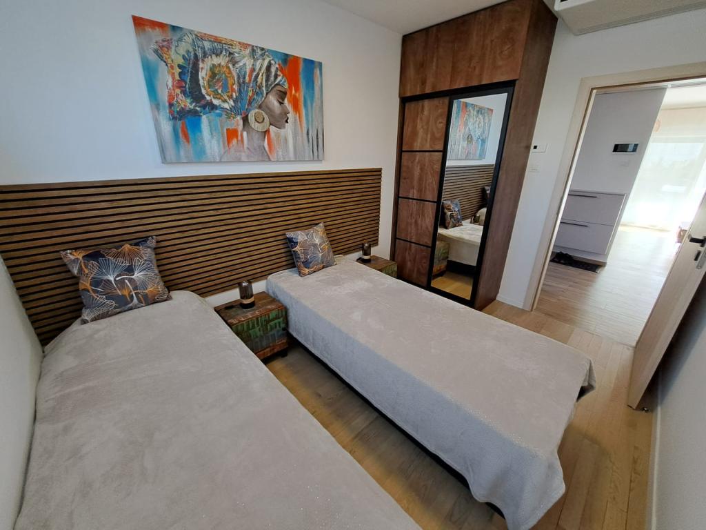 Explore! Relax! Enjoy the atmosphere of Dalmatia! Our modern and cozy ground floor apartment is located in a quiet part of Zadar called Stanovi, which is not visited by crowds of tourists. Nearby (walking distance) there are numerous groceries, supermarkets and service points - everything you need even for a longer stay, without having to use a car. The accommodation has an independent entrance from its own garden (approx. 55m2), where guests have access to a private jacuzzi. The garden is surrounded by greenery. The apartment includes a living room connected to the kitchen and dining area, 2 bedrooms (each with one double bed that can be separated into two single beds), a bathroom with a shower and a covered loggia (approx. 7m2). Part of the garden with the spa bath can be shaded with an automatically sliding blind. In front of the building we have 2 private parking spaces. (no extra charge) We also offer our own charging station for electric cars! (extra charge)