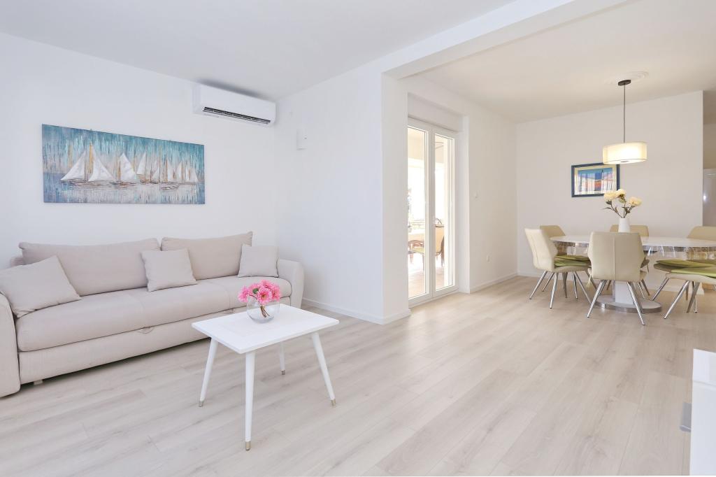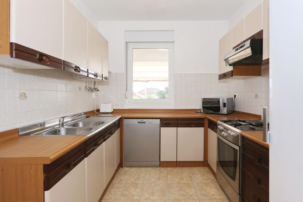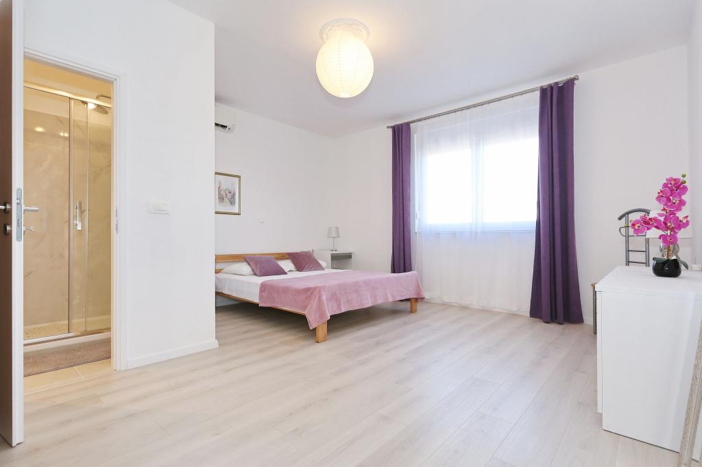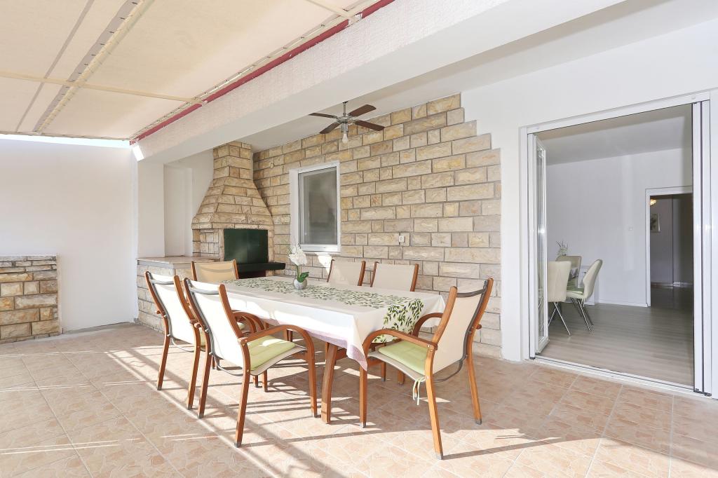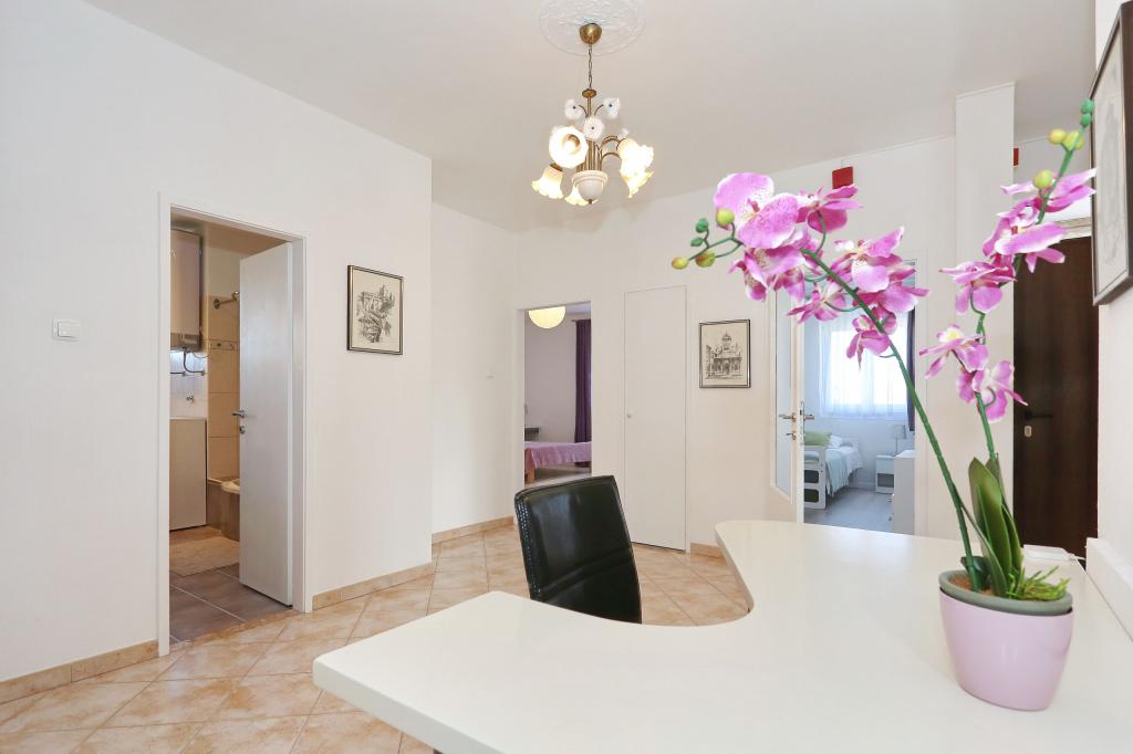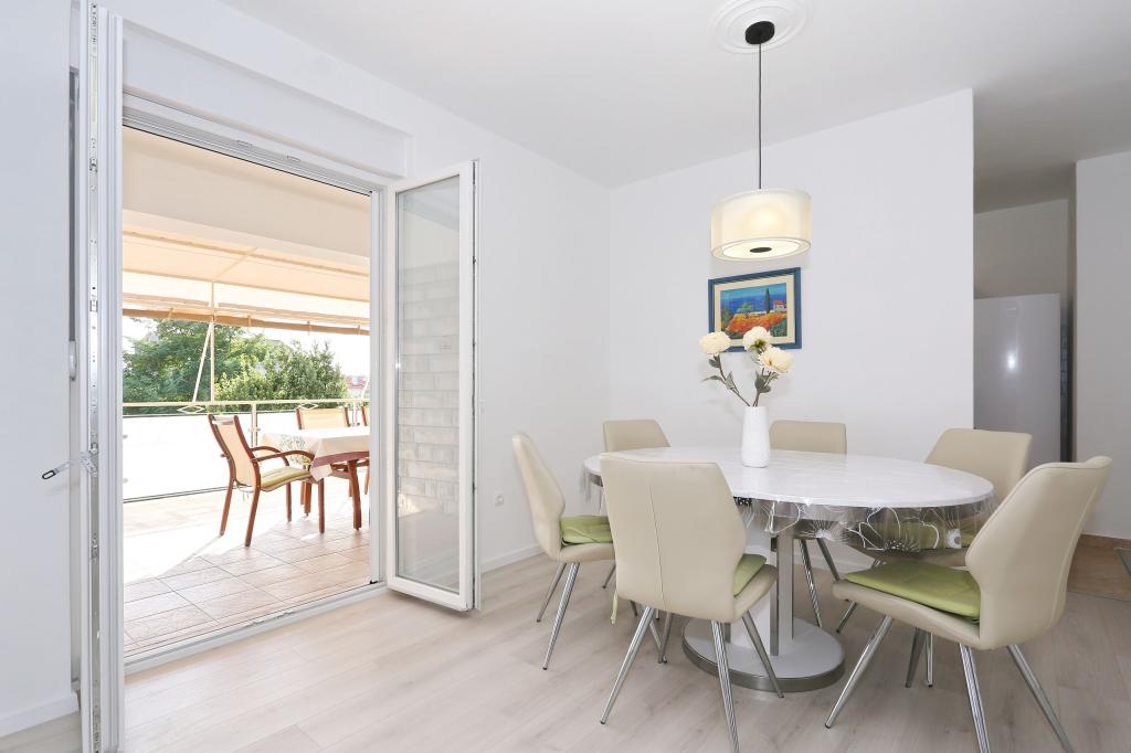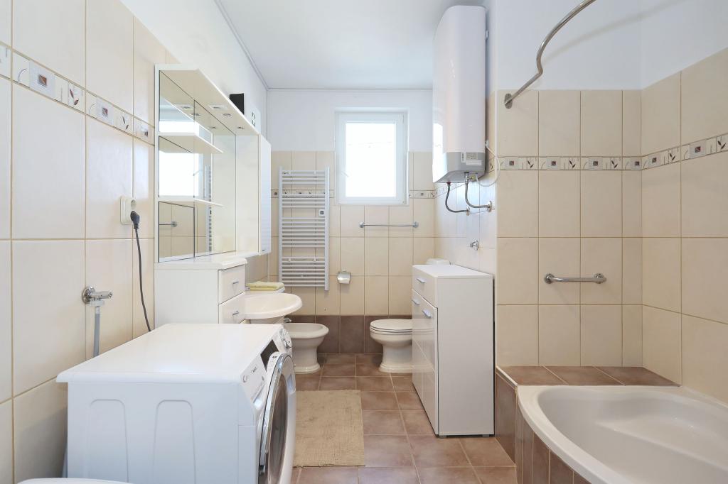 Apartment Green oasis Zadar is located in a quiet neighborhood, on the first floor of a family house that has its own park of 400 m2. The apartment has a surface of 140 m2. Within the apartment are also available: a jacuzzi in the park with sunbeds, a table for table tennis, and free private parking. The apartment is fully air-conditioned and has free WIFI. The space of the apartment is organized into 3 bedrooms and a living room. In two rooms there are double beds with the possibility of an additional bed, and one single room. In the living room there is a couch that is also a comfortable bed for two people. The apartment has two fully equipped bathrooms, an equipped kitchen with a refrigerator and freezer, and a large pantry with a desk. This comfortable apartment also has a terrace of 25 m2, with a large table and barbecue.