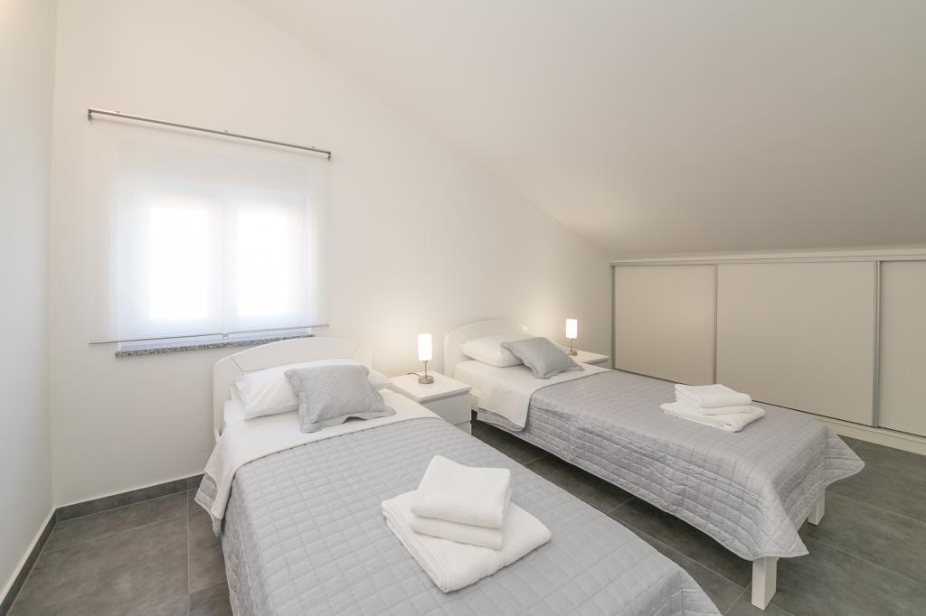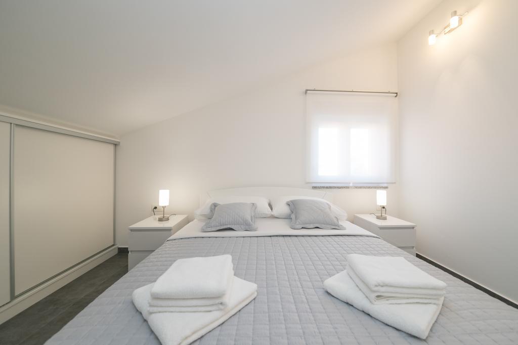 Apartment Jukić is located in Zadar in a quiet neighborhood Novi Bokanjac-Poljana Jaroslava Šidak 26. The apartment is 110 m2 in size and is located on the first floor of a family house. The space was completely renovated in the spring of 2020 and consists of the following rooms: hallway, kitchen with access to the terrace, living room, bathroom with shower, pantry, two bedrooms. The apartment offers a view of the garden and Velebit. It is possible to accommodate 4 people, and there is also the possibility of an additional bed for two people.