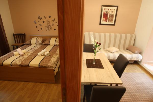 The apartment is located in a quiet area at a distance of 15 minutes from the city center. The nearest beach is within 5 min walk and close to the beach and other facilities. We are located at a distance of 100 meters from the main bus station and close to various shops and diner. Unit includes a kitchen, living room, dining room, bedroom and bathroom. Guests have access to free Wi-Fi, air conditioning and a small area in the garden furniture.