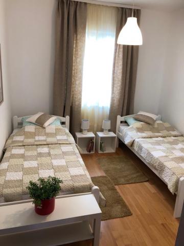 I rent a three-room apartment, 60 sqm with a large terrace of 30 sqm on the first floor of the house. It is located in Borik, in a quiet part of Zadar. The town center is a 20-minute walk away from the sea. The accommodation allows guests to spend a peaceful holiday with all the beauties of the city of Zadar. The apartment consists of a kitchen with dining room, living room, two bedrooms, two bathrooms (one bigger and one smaller). It is anticipated to accommodate 4 people comfortably. In the apartment are air conditioning, internet (wi-fi), large TV, washing machine, hairdryer, towels, bed linen, stove with oven, dishes. , barbecue. . There is a parking space in the yard. In the immediate vicinity there are shops, restaurants, cafes, shopping center. Not suitable for pets. The nearest beaches are Uskok, Borik and Puntamika. There is a 10-minute walk to the beach. The advantage of vacationing in the apartment is the peaceful environment of family houses and the possibility of a quick tour of everything Zadar and its surroundings provide.
