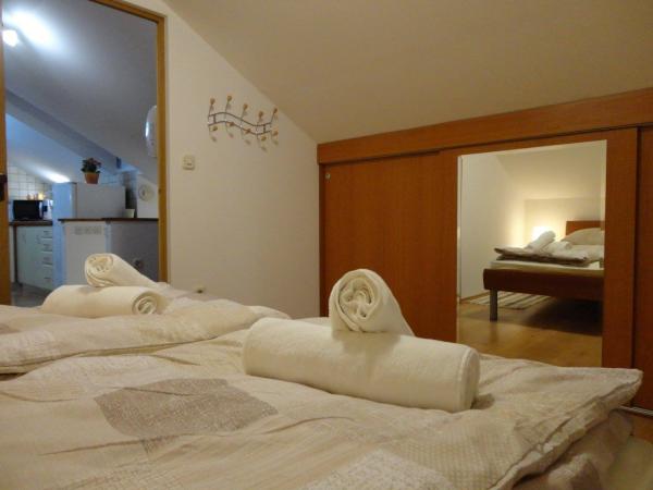 Apartment Melanie is located in a prime position in the city of Zadar, where all of the step. The apartment is in a private building with its own entrance. On the first floor living owners, while the apartment in the attic of the building, which makes it extra special and therefore more enjoyable to stay. Apartment Melanie is located at the point where everything can be visited in a few steps. Thus, the bus station 7 minutes walk, great city beach Kolovare 9 minutes walking distance, while the old town and all the historic sights of Zadar there for only 15 minutes. In addition, close to a large shopping mall, marketplace, market, hospital and post office. Near the apartments there are free and free parking spaces. Simply put Staying in an apartment Melani all you step on the place.
