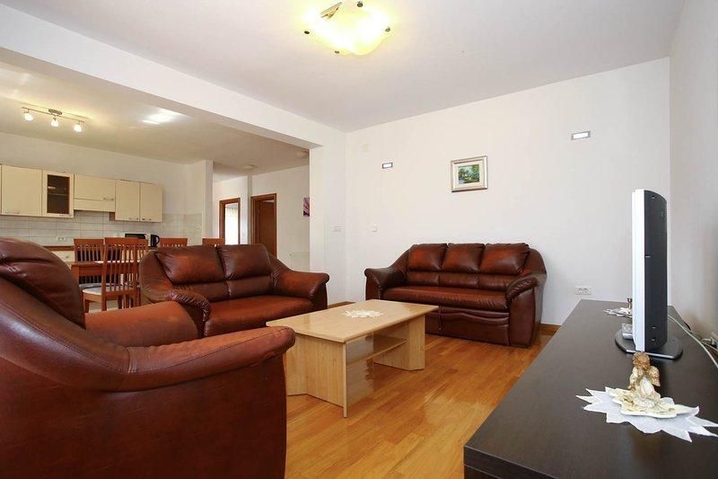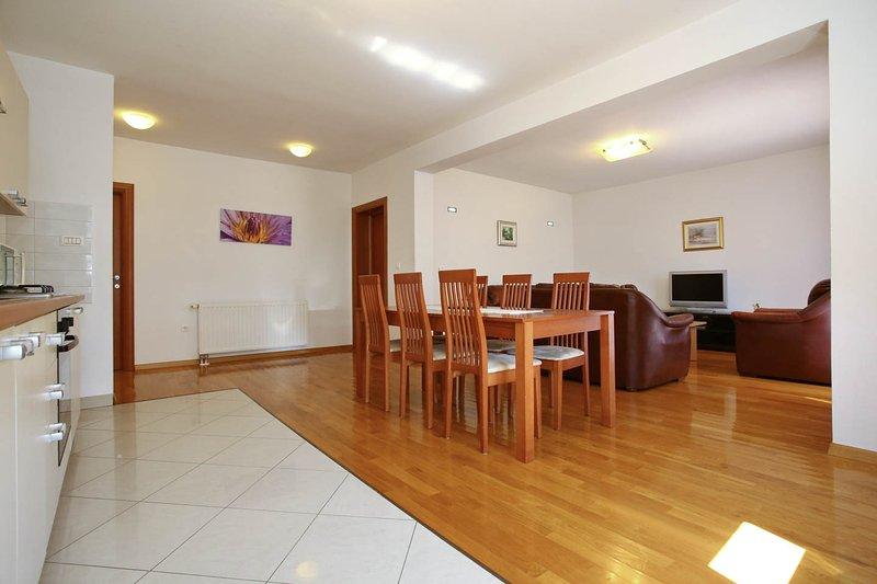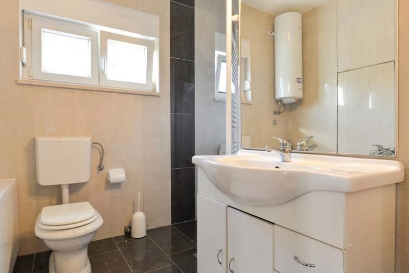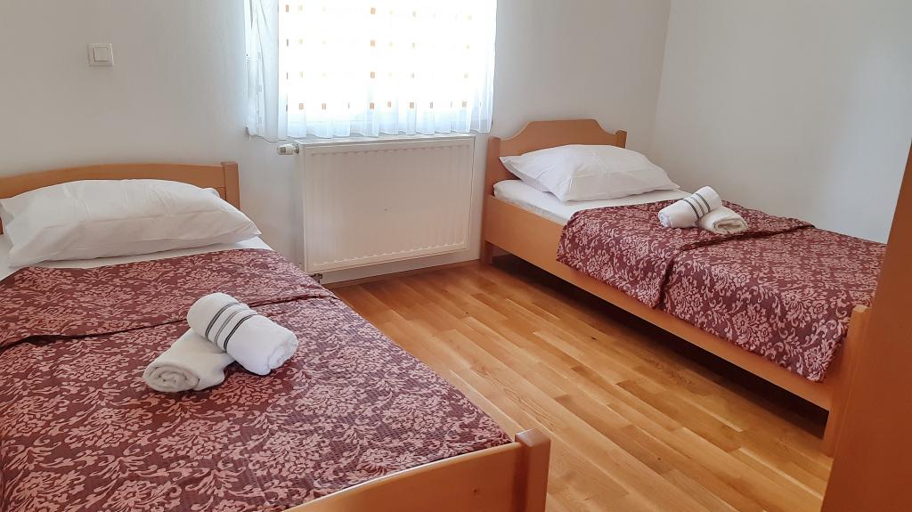 The house is located in the tourist part of Zadar, Borik, where are located hotels FALKENSTAINER groups, which have sandy beach and water park and is available with payment. The streets are all essential facilities from supermarkets, restaurants, and amusement park for children. The house and garden have a lot of space for children to play, barbecue is in operation with a large wooden table and benches for relaxing with specialties from the grill until late at night. The apartment is large and comfortable we are close to the beach (3) 200 m. The apartment consists of three bedroom with two beds, a large living room with kitchen, bathroom, small toilet, and a large balcony for morning coffee, and we DIJECIJE bed for couples with small children We can accommodate 6-8 people