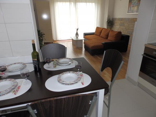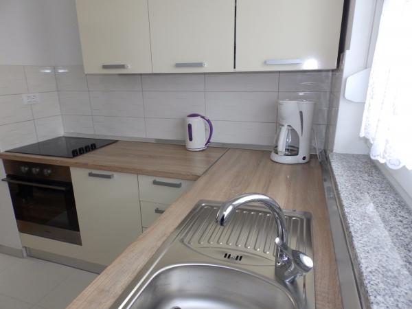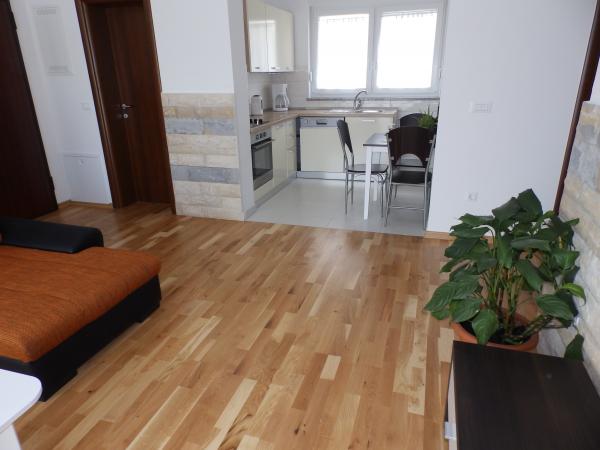 Apartment Nagoya is located on the ground floor of new building of 6 apartments. New fully equipped apartment in a quiet area ideal for vacation. It consists of two bedrooms, kitchen, living room, bathroom and toilet. It also has a large garden of 90m2 with fireplace, ideal for family holidays. The apartment has one parking space. Wi-fi is free.