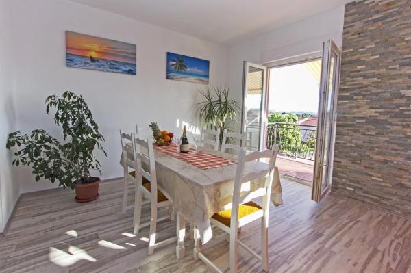 Fully equipped apartment, renovated this year with terrace and sea view. The apartment is located in Diklu, a tourist part of the town, less than 5 minutes walk from the beach, in a quiet street, a few minutes walk away from the clubs. On the beach there are entertainment facilities (sea activities) Nearby are shops, pharmacy, bank, gas station, restaurants. Bus station is less than a 5-minute walk from the house. Large apartment on the 2nd floor has 3 bedrooms, bathroom and toilet, kitchen and spacious living room with balcony and sea view. The smaller aparman is located on the ground floor, suitable for 2 persons, has a kitchen, bathroom and a room. Contains air conditioning, television, internet.