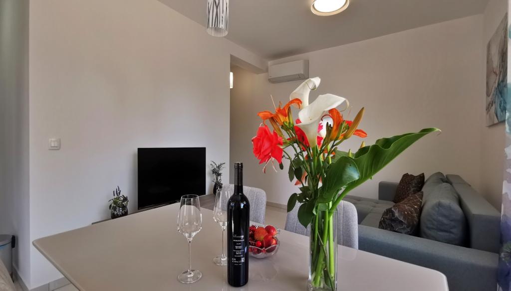 The entire apartment is air-conditioned, Wi-Fi internet speed up to 200 Mbit, dishwasher, washing machine, dryer and iron, microwave, kettle, oven, fridge with freezer, LCD smart TV with IPTV service