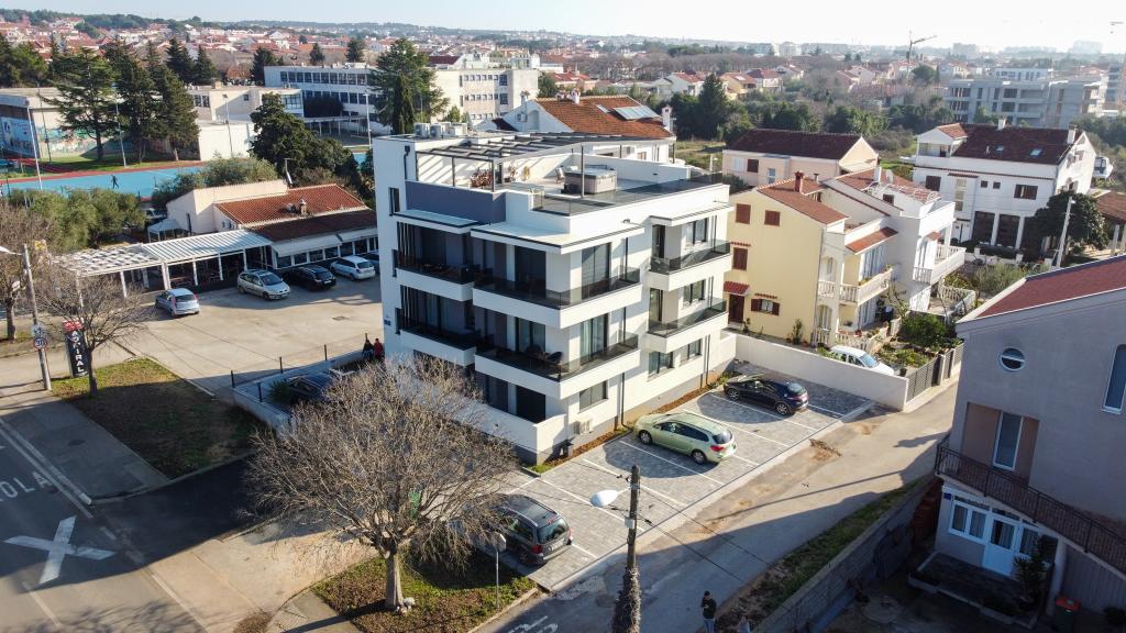 Apartment Noa is located in the elite location of Borik, right behind the Falkensteiner Hotel. From the apartment to the center of Zadar is 3 km or 10 minutes by car. Next to the apartment there is a bus stop, a restaurant, a coffee bar and a pharmacy. All beaches are within walking distance: Borik beach is 5 minutes away, Uskok beach is 10 minutes away, while Puntamika beach is 12 minutes away. Marina Borik is also at a walking distance of 6 minutes. The apartment is located on the first floor, has one bedroom with a double bed (160x200), a bathroom, a fully equipped kitchen and a living room with a corner sofa with an extra bed. In every room there is a flat TV and wireless internet as well as air conditioning. Around the entire apartment there is a balcony with a view of the sea. A parking space is provided next to the building. Smoking is prohibited in the building, while smoking is allowed on the balcony.