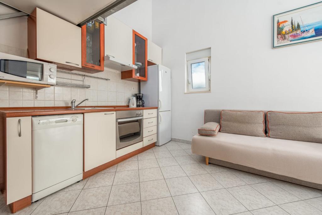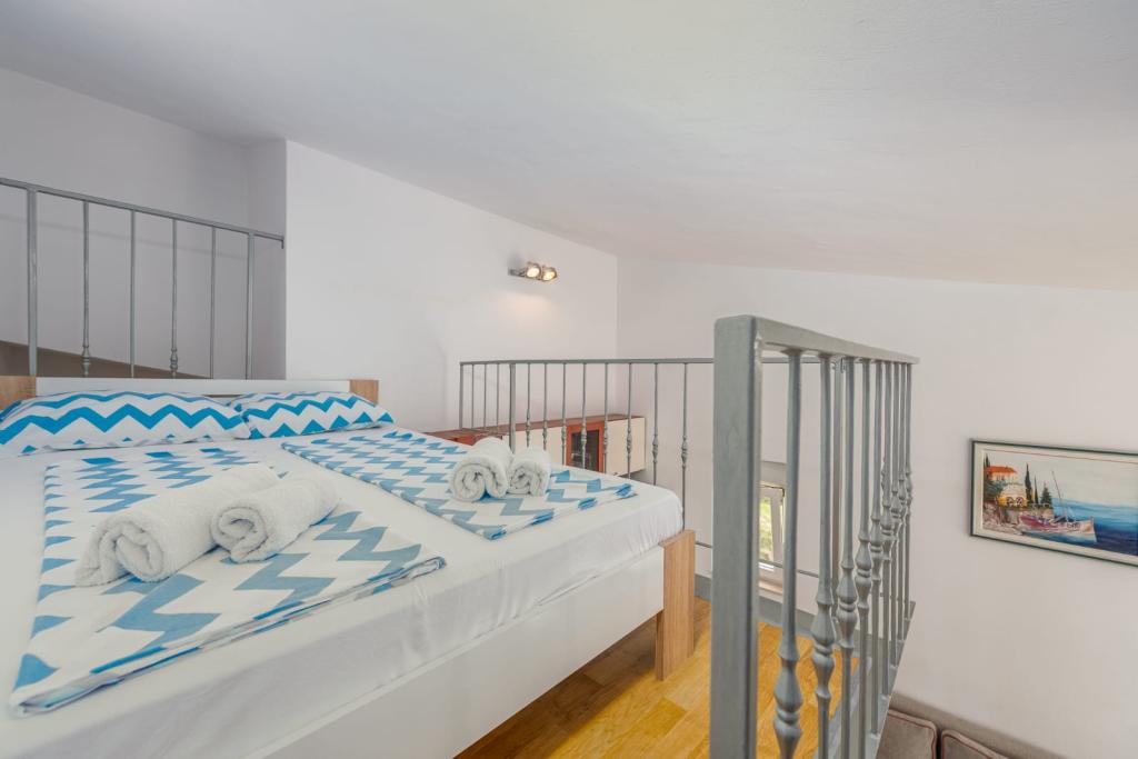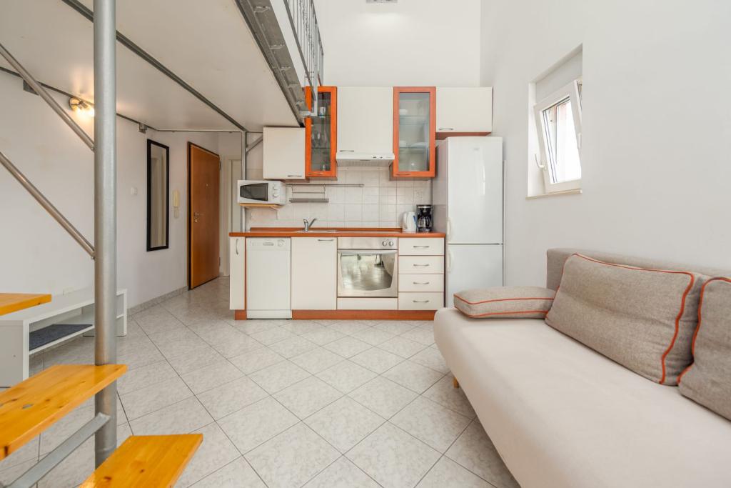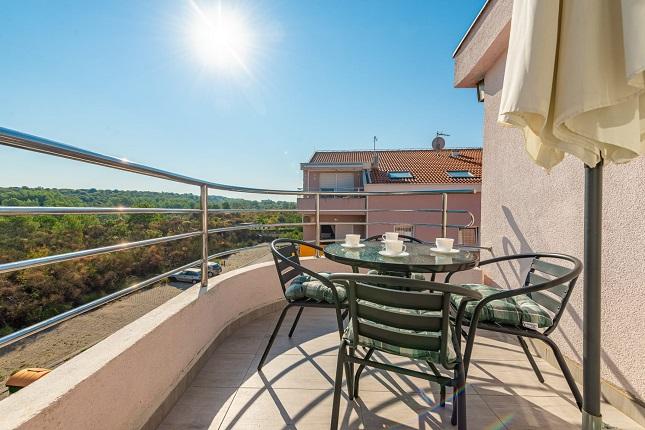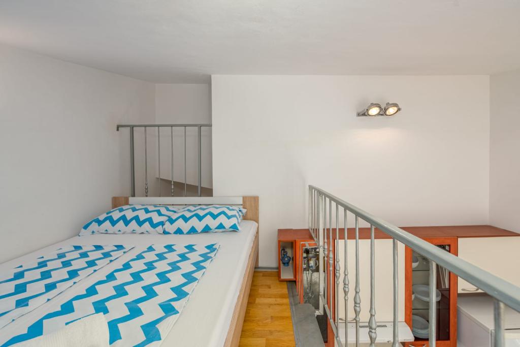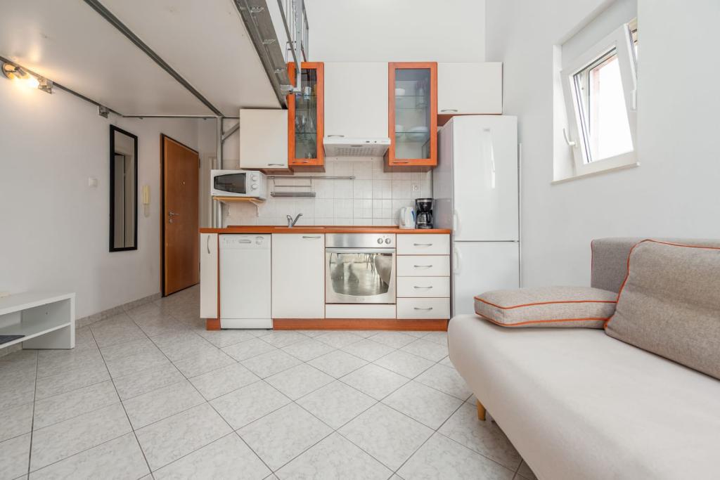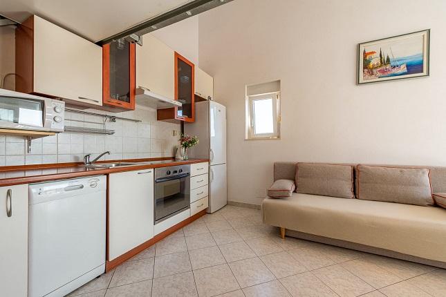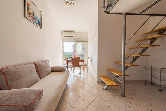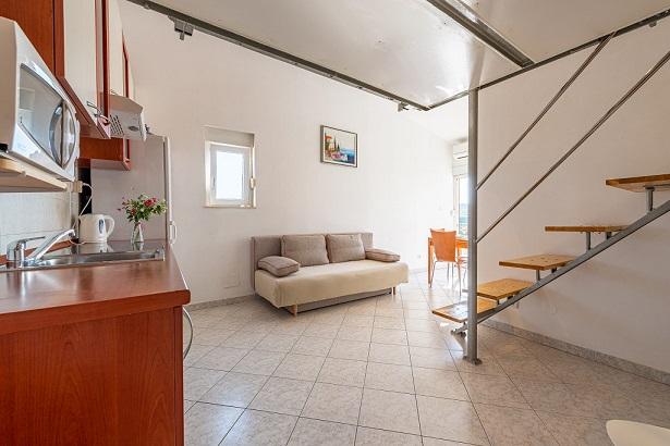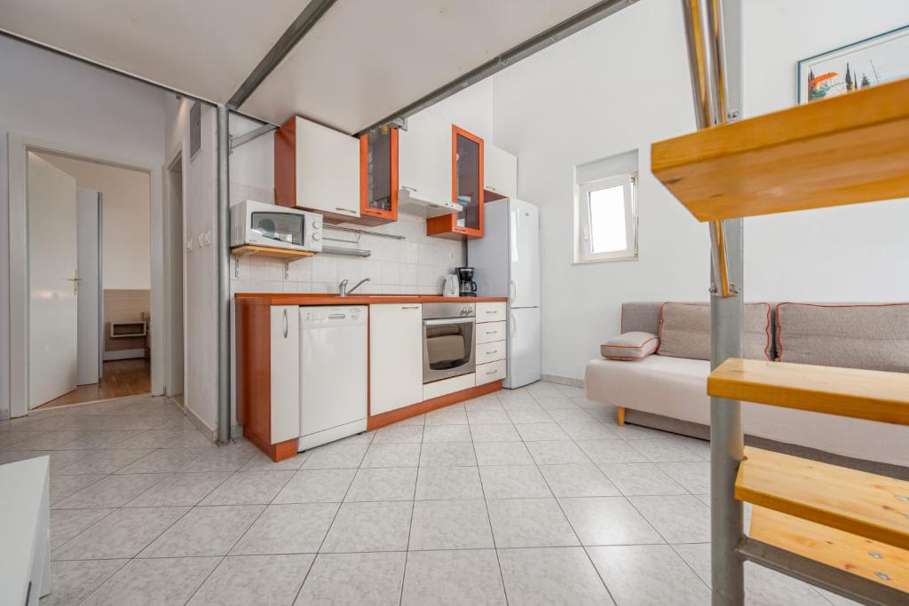 Apartment Petković is located in Diklo, a well-known tourist area of Zadar. It is ideal for a quiet and relaxing family vacation for 4 people. It is 45m2 in size, 350 meters from the sea. It consists of a bedroom with a double bed, a living room-kitchen, a balcony, a toilet-bathroom and a gallery with an additional bed for two people. It is equipped with a washing machine, a dishwasher, a microwave, WiFi flat and air conditioning. Smoking is allowed on the balcony, the apartment is not for non-smoking guests. Parking is free in front of the building. Next to the beach there is a coffee bar, a supermarket, a bakery, a pastry shop and a bus station. Restaurants and a pizzeria are 500 meters away.