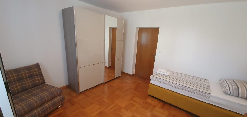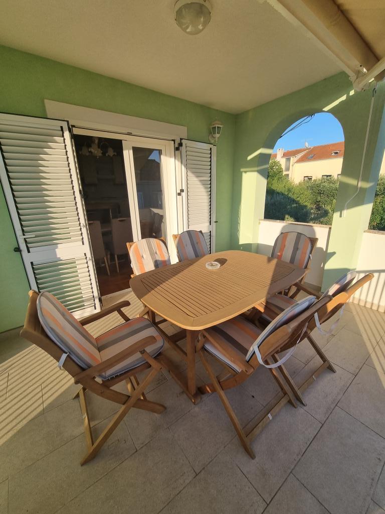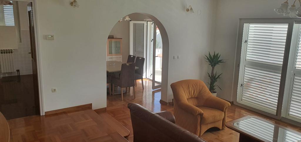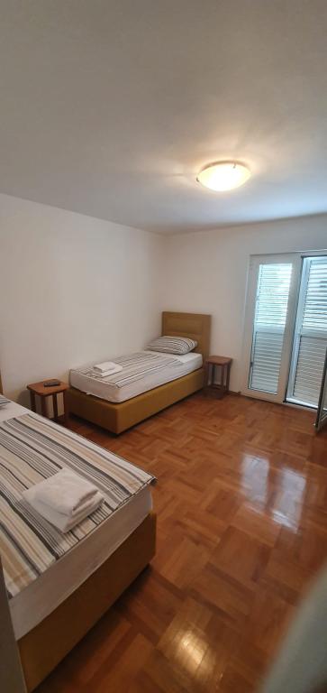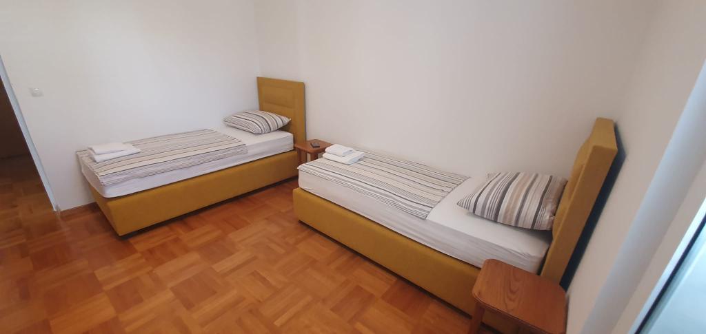Fully equipped apartment 1 km from Borik beach. It is located in a house surrounded by greenery and flowers in a quiet part of town. The yard is equipped with facilities for children (soccer playground, trampoline, swings)... The apartment consists of 2 separate rooms. In one room there is a large double bed and in the other 3 separate beds... the possibility of an additional bed exists...