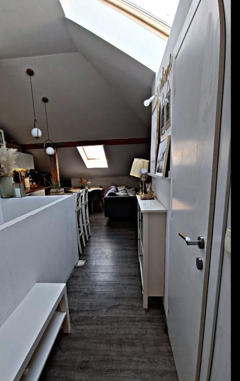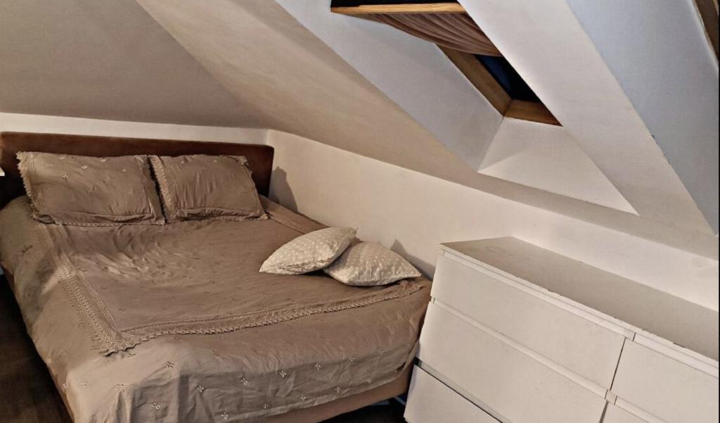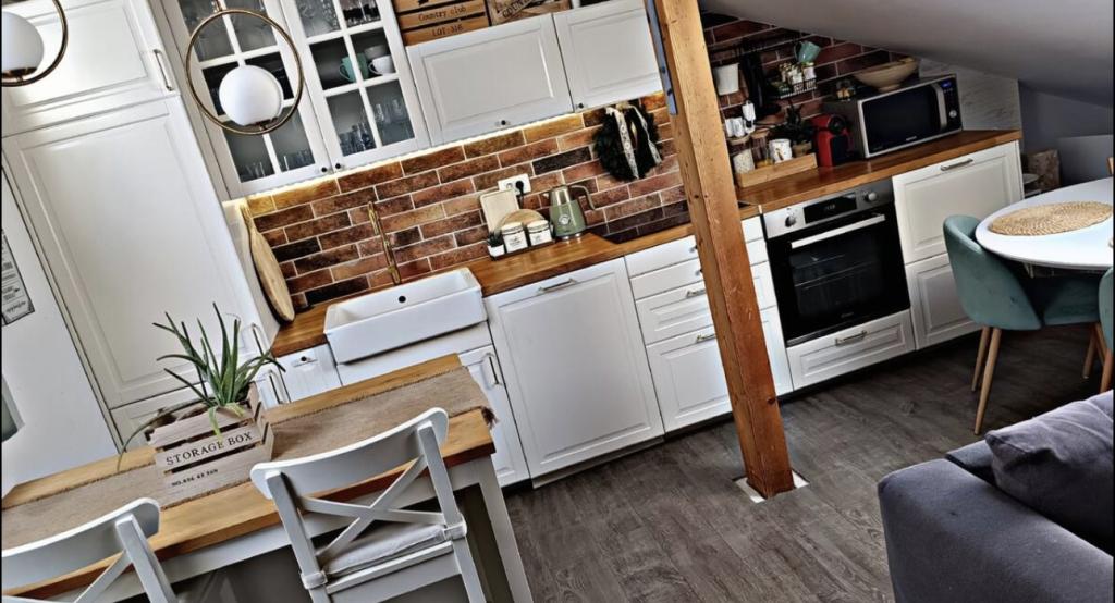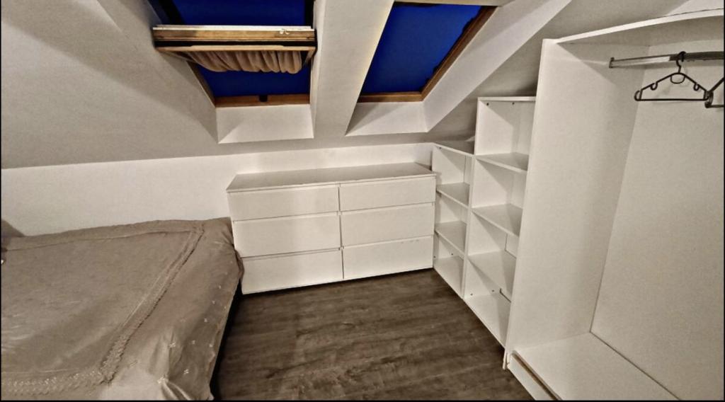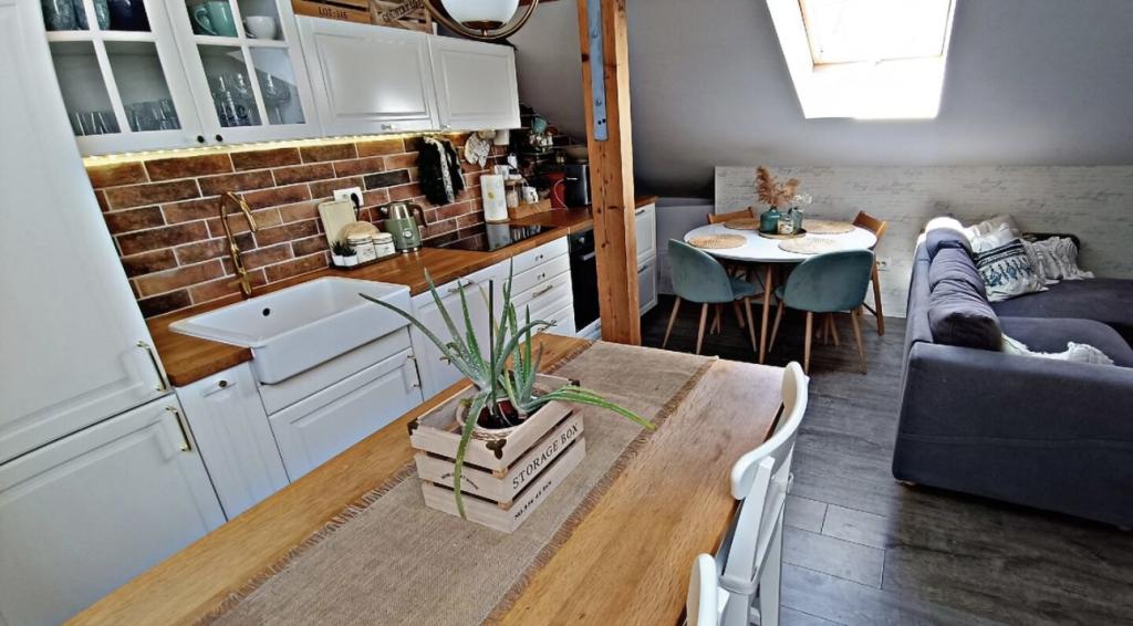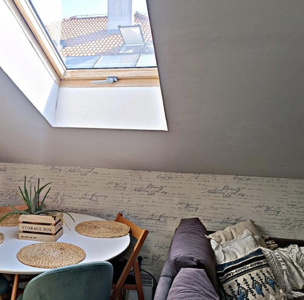 Relax in this cozy loft accommodation with a view of the city. The apartment is located in a quiet part of the city. It is located in the attic of a smaller building. There is no shortage of sunlight here because we have four skylights in 40 square meters of living space. The apartment has one bedroom, a bathroom and a larger space where there is a kitchen, a living room and a work area. Internal stairs lead to the apartment. There is a parking space in front of the building. You enter the apartment yourself using the safe at the door.
