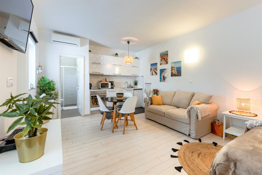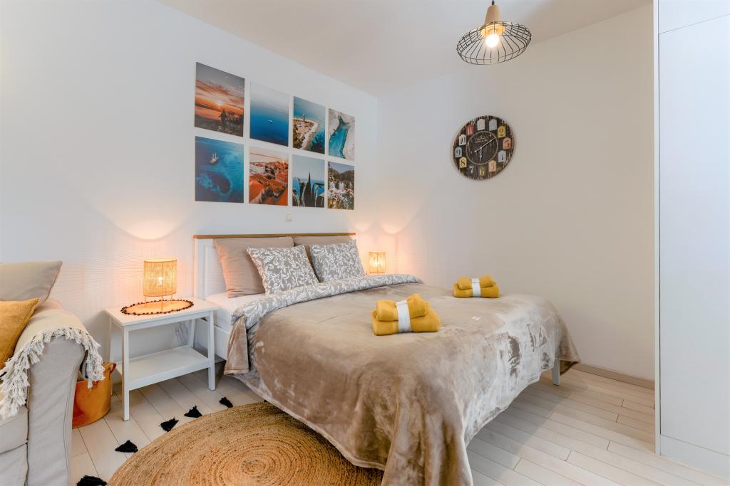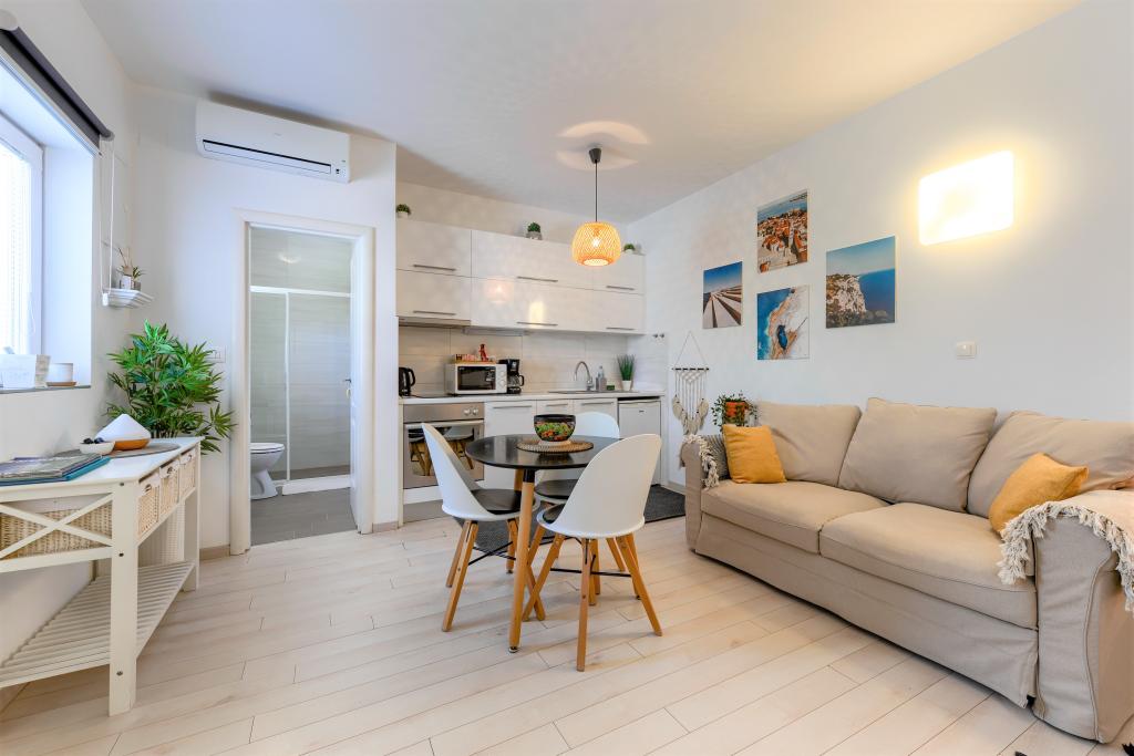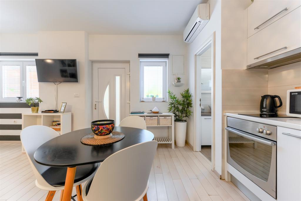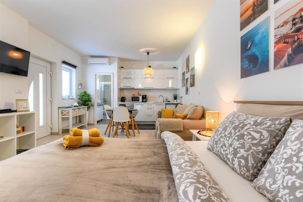Studio Mare is located in the area of Zadar called Brodarica. The apartment itself is located about 500 meters from the sea, and in the immediate vicinity there are excellent restaurants (Mamma Mia, Roko, Rafaelo...) as well as cafes, a shop, a pharmacy and tennis courts for recreation. Guests have access to air-conditioned accommodation with a terrace and free parking. Inside the apartment there is everything guests need for a pleasant stay. Smoking is not allowed in the premises, but the terrace is always available for that. Also, the city center is 15 minutes away on foot, which is also a great reason to walk along the sea to one of the most beautiful symbols of the city of Zadar, the barge, which in just a few strokes of our rowboats transports you to the very heart of the city and the famous sights that Zadar has to offer.