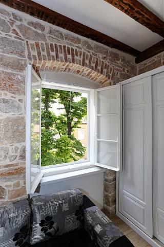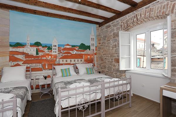 New apartments and rooms with stone walls and top-quality equipment in the center of Zadar are a 1-minute walk from the sea, and 5 minutes walk from the beach.Sorounded with historical monuments all within 5 minutes walk, and fine restaurants this location is definitely not to be missed. Bus station is 15 minutes walk.Supermarkets are only 5 minutes away by foot.Taxi are at several locations all located 5-10 minutes walk from the property.. Airport is 10 kilometers from the apartments and the easiest way ti get to the adress would be with taxi.