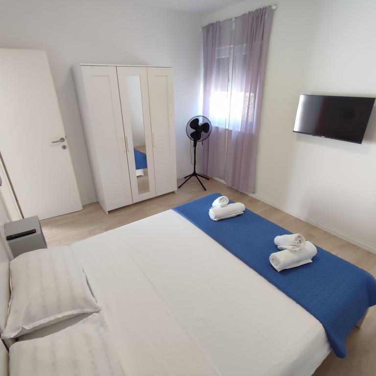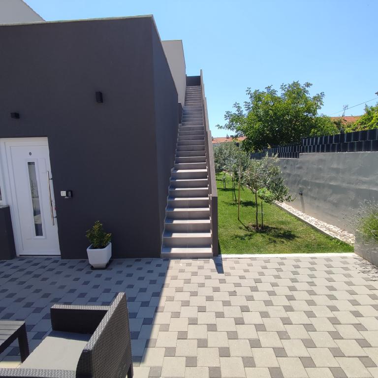 The facility is a new building and is located in a quiet and peaceful environment. The apartments are located at Hrvatsko sabora Street 10, Zadar. Nearby are Borik beach at a distance of about 3.5 km, Kolovare beach at a distance of about 2.5 km. Distance from large grocery stores (Interspar, Konzum, Plodine, Eurospin) is 1 km. Grand Gastro and Gušti restaurants are 500 m away. Supernova shopping center (cafes, bakeries, Spar) is 900 m away. Višnjik sports complex is 1 km away. The distance from the city center is 2.5 km.