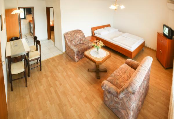 Read more Accommodation unitsTourist tax is included in the price. Option 1: use of air conditioning for an additional charge of €3 per day. Option 2: use of washing machine for an additional charge of €5 per wash (detergent included in the price). Stays shorter than 3 days are more expensive.