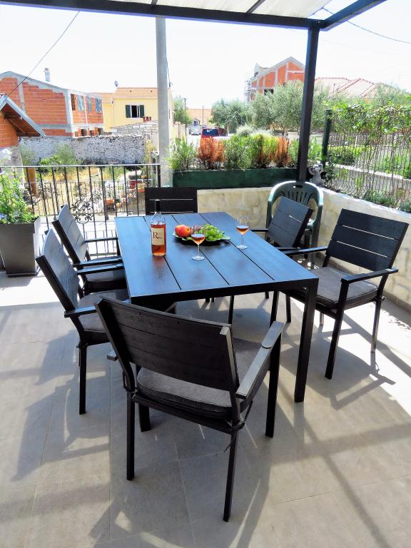 In the new private house in Zadar in the city district Arbanasi are two apartments (4 star category). Each apartment has a separate entrance and privacy. Air conditioning in each room. Underfloor heating in each room. On the first floor is HOBBIT1 (5 2), a fully equipped apartment with kitchen. Two bathrooms with toilet. Large terrace with dining table. On the ground floor is HOBBIT2 (4 2) fully equipped apartment with kitchen. Spacious bathroom with toilet. Large dining room with access to the courtyard and dining table. Each apartment has a dishwasher, washing machine, ironing board and iron, hair dryer, cot, high chair, bathtub, toilet seat and nightstand for babies, satellite TV with national programs of several world languages and children's programs, internet WIFI . Grocery store in the immediate vicinity - 40 m. City bus to the center nearby - 20 m. Walking by the sea to the center about 20 min. Beaches of your choice nearby - 4 minutes walk.