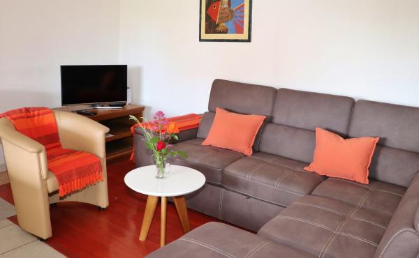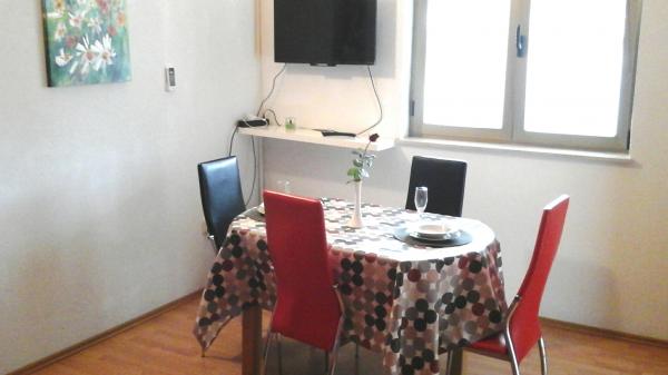 Apartment located in a quiet part of town, is located in private house with large parking space, terrace and beautifully landscaped garden. In the apartment there is 1 room with double bed. a room with 2 single beds and a room with an extra bed (futon type) on the floor, a living room with a sofa bed (160x1200 cm), a kitchenette, a washing machine, a washing machine, (Konzum and Billa, and McDonald's are 5-10 mins from the apartment where there is a train station (city and long distance), to the old city center you are for 20 minute bus ride and bus No. 2 for 5 minutes (ticket price is 10 kn) Kolovare town beach is 15 minutes away from the apartment for a short walk or 5 minutes if you are driving by car If you want to rest in silence without city noise this is the place for you.