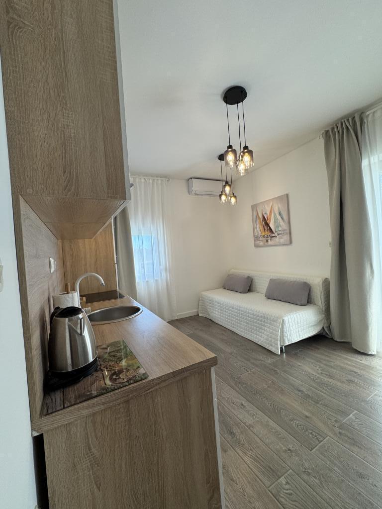 The apartments are super neat, everything was right, the hosts are one of the best I've met. Boss Semir supplied us with fresh figs on a daily basis. The location is great, and the price is acceptable. And the sea is much cleaner than on the main city beach.