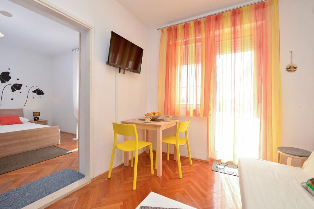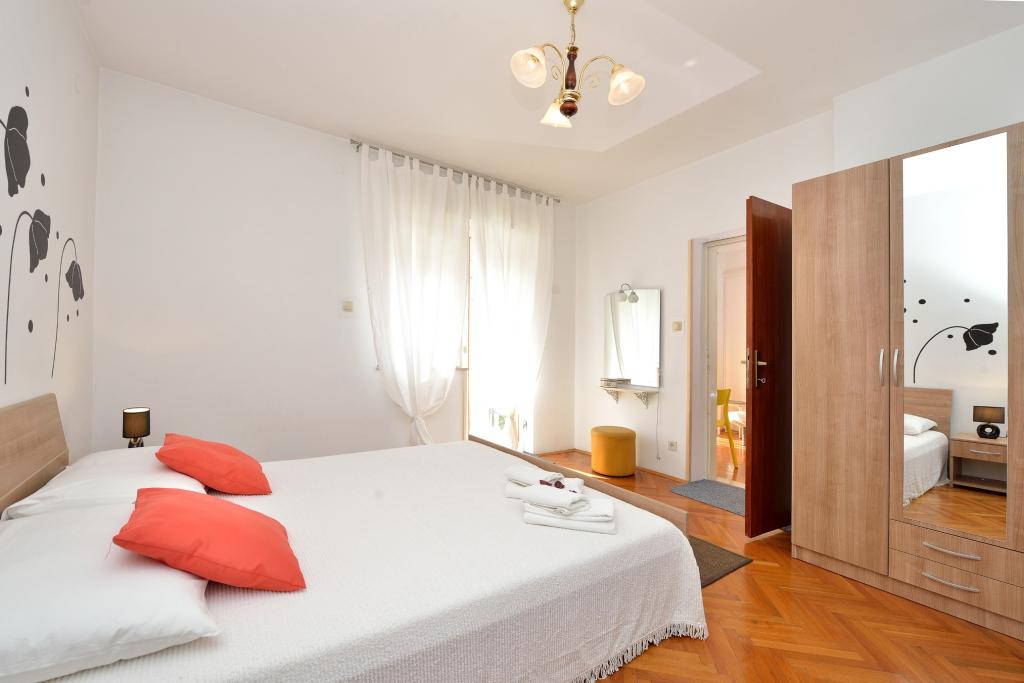 Apartment in a quiet and touristy part of Zadar, called Borik. The facility is located 8 minutes to the beach, supermarket and bus station. The apartment is fully equipped with everything you need. It has two bedrooms, bathroom, large living room with kitchen and dining area, one balcony at the back and a terrace at the front. The apartment has air conditioning, satellite TV, wifi is available. Parking is in the yard. Guests can use the barbecue which is also located in the courtyard of the facility.
