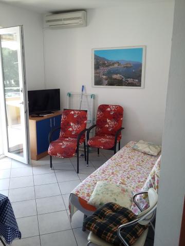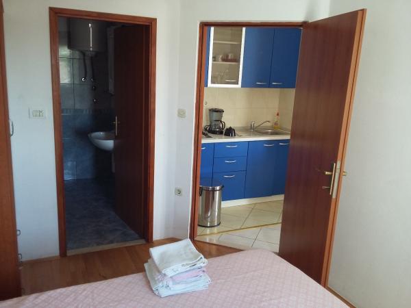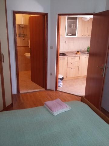 I am renting apartments, about 50 meters from the sea. Nearby are shops, bank, exchange office, restaurants, fast food, bus station ... The beach is pebbly - sandy next to a pine forest, the beach has a blue flag. The apartments have 1 bedroom with a double bed, a living room with a kitchen and a bathroom. The living room has an extra bed for 1 adult or 2 children. The apartment has free Wi-Fi, satellite TV and air conditioning. Bed linen included in the price.