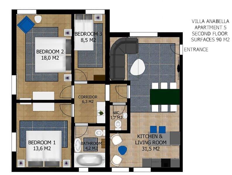 Apartment, spacious, clean and well furnished, equipped with all comforts, such as air conditioning in every room, mosquito nets, dishwasher etc. The kitchen has everything you need to cook without having to make do with it. The location is perfect, walking distance to the beach and bars and restaurants. The host Anabella is very kind and helpful.
