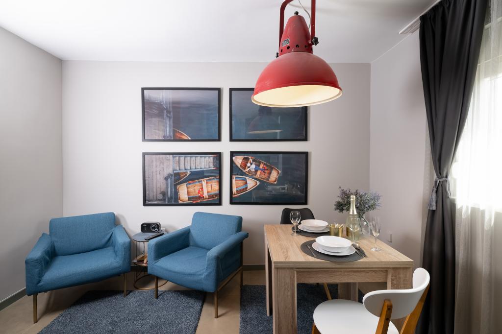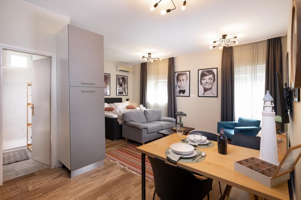 The lady who owns the apartments was extremely nice and helpful and she was full of joy. The room we got was enormous and it was also very clean and sanitized which meant a lot to us regarding the pandemic.