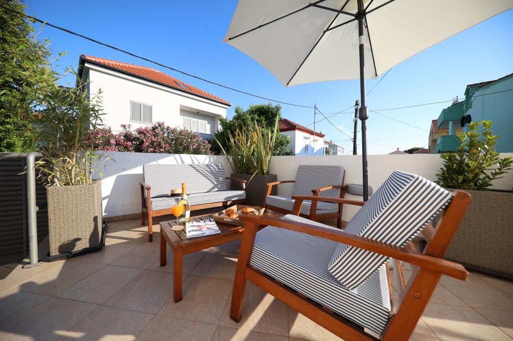 If you want to wake up to the sound of the sea and the first thing you do in the morning is walk to the beach, drink your morning coffee on the comfortable armchairs of our terraces, our apartments are ideal for you. 100m from the accommodation you can choose between: sandy, pebble and concrete beaches. Our 7 apartments are located on the ground floor, 1st and 2nd floor of a residential building intended exclusively for tourist purposes. In 2023, all were newly decorated. App1, App2, App3, App4, App6 size 32-38 m2 intended for max. 2 people, App A5 size 68 m2 is intended for max. 4 people, App A7 of 90 m2 is intended for max. 5 people. Each apartment has a garden with various seating and a barbecue. The house is located in a quiet area of Zadar (Puntamika) and only 4km from the center, connected by a promenade in the immediate vicinity of the building. Free parking, unlimited use of Wi-fi, SAT/TV, air conditioning units are available to all guests.