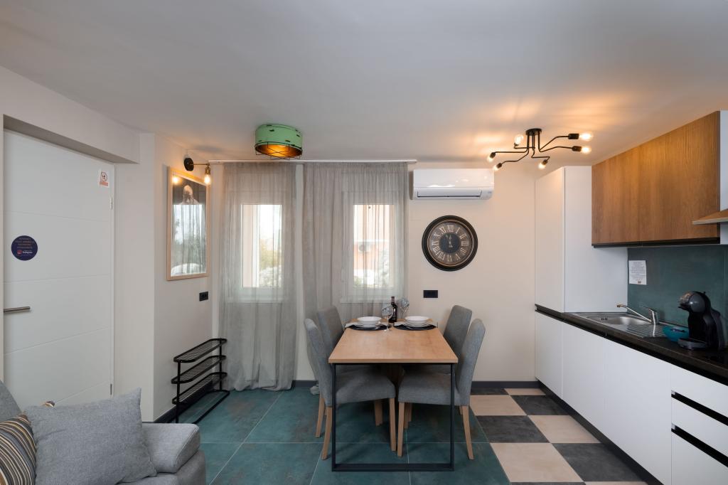 The apartment is very big. Very comfortable bed with hard mattress. Not so far from beach, just 2-3 minutes walking. We did not like Borik sandy beach and stay at a stone beach nearby (Plaža Borik) using the pier to jump into water. Water temperature was perfect.